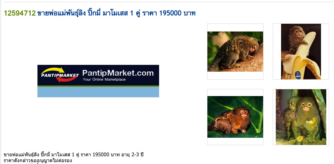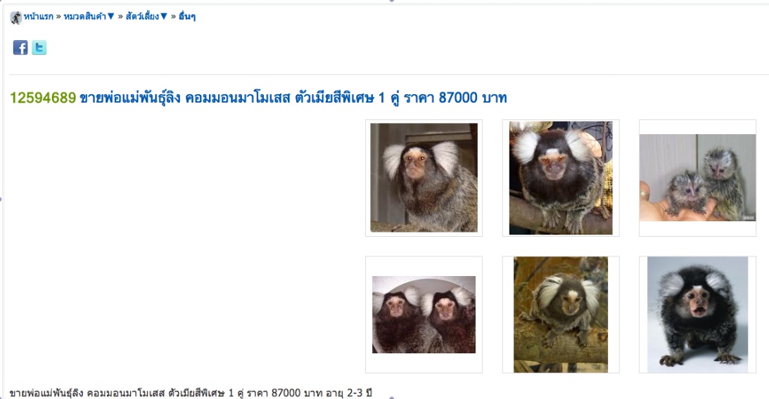 Although Thailand is a signatory to CITES (Convention on International Trade in Endangered Species) many animals are “legally” imported into Thailand with CITES licenses claiming that the animals are part of animal-exchange programs between zoos, however after investigating the issue over the last 6 months we have found that most monkey shipments imported in to Thailand have actually ended up in the pet trade, with Thai blogs and discussion sites being the trading place.