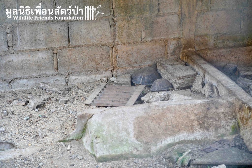 A few weeks ago we visited the temple to speak to the Abbot and assess the situation. Thankfully the abbot was concerned for the future of these animals and informed us that he would be happy for us to help them. During the initial visit we were shocked to find over 100 hundred animals including an endangered white-handed gibbon, an uncountable number of endangered turtles, a domestic goat, a palm civet and even domestic rabbits and ducks. WFFT’s philosophy is to focus on the rescue and rehabilitation of wild animals but in this instance we could not leave the fifteen domestic animals in this squalor so we committed to providing them with a permanent home at WFFT.