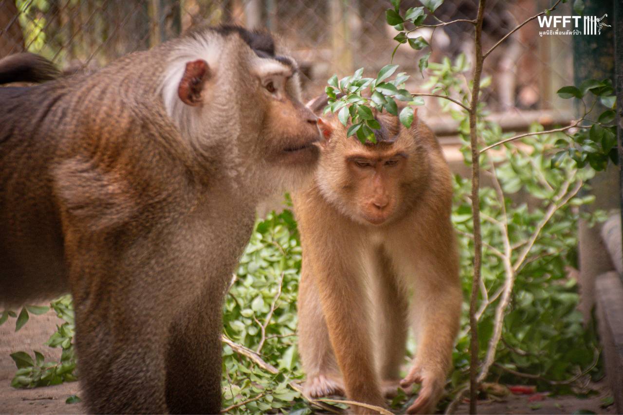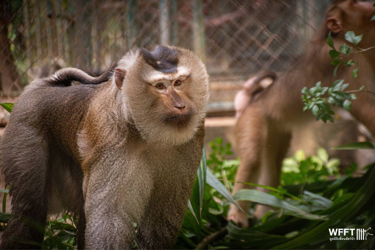 Pig-tailed macaques, like Dome, are intelligent and social animals. The abuse and isolation these animals endure often leaves lasting scars. Dome, like many coconut monkeys, was so deeply traumatised that he struggled to socialise. Years of abuse left him unsure how to behave around other macaques, making it difficult to form bonds.