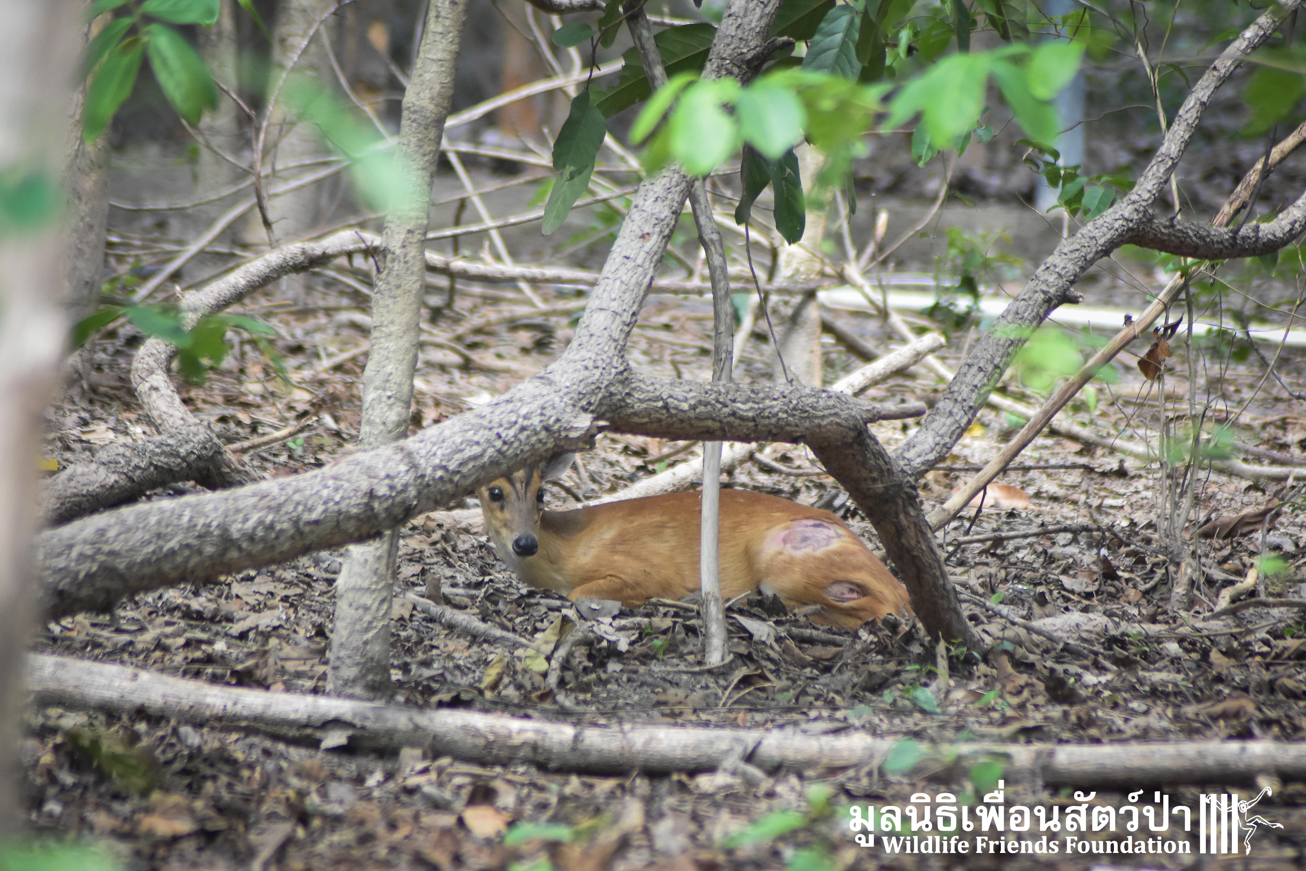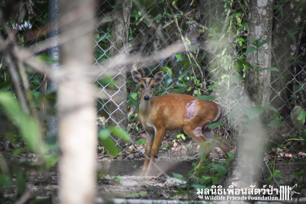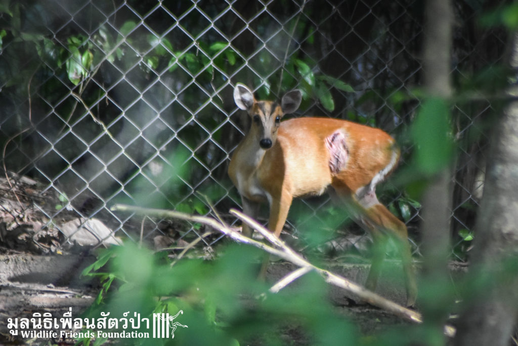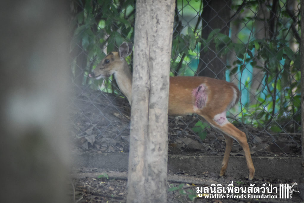 A few days ago an injured Southern red muntjac (Muntiacus muntjak curvostylis) was brought into to the WFFT Wildliife Hospital for urgent treatment after being attacked by a domestic dog. He had sustained numerous deep bite wounds, the vet team cleaned the wounds and stitched them up.