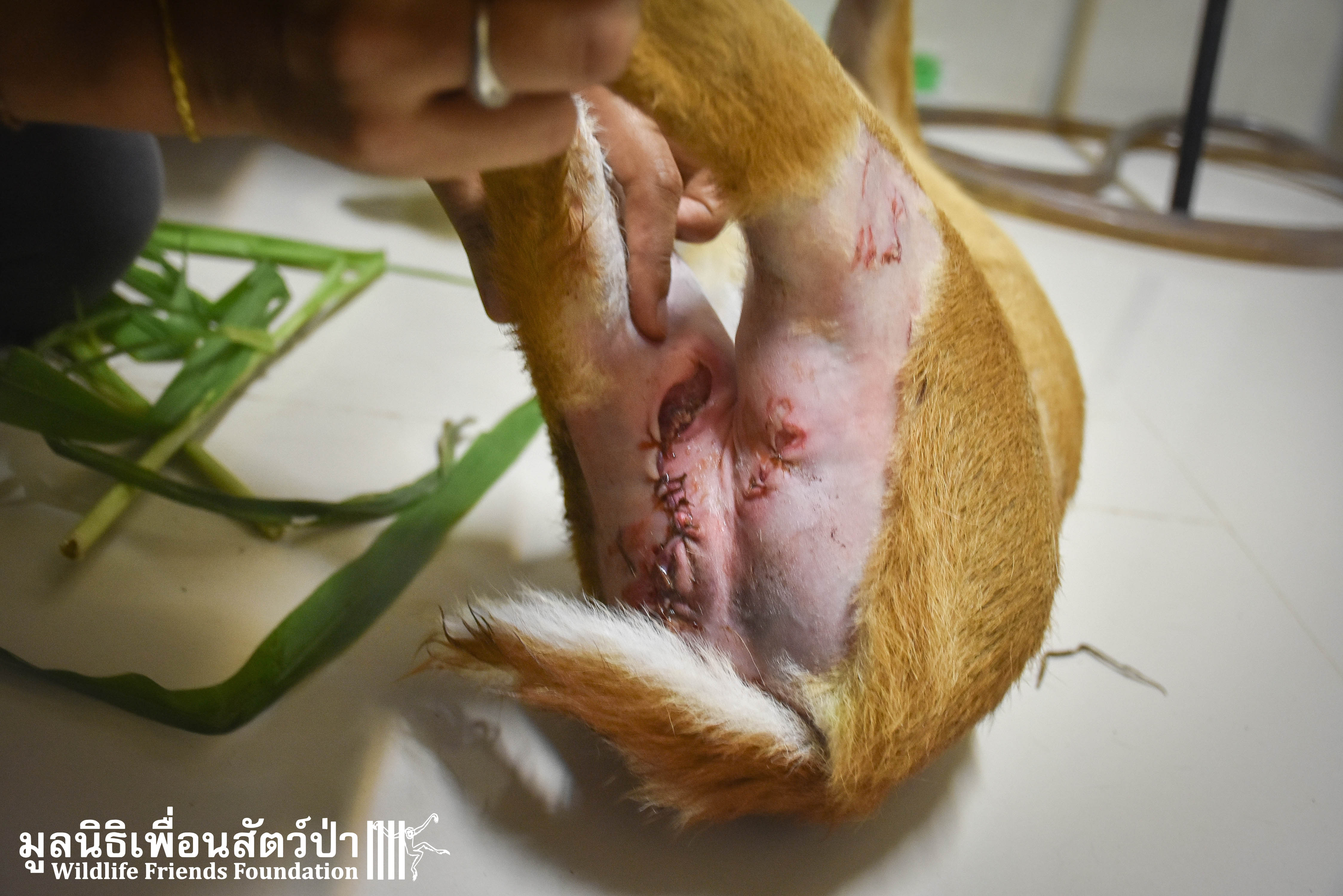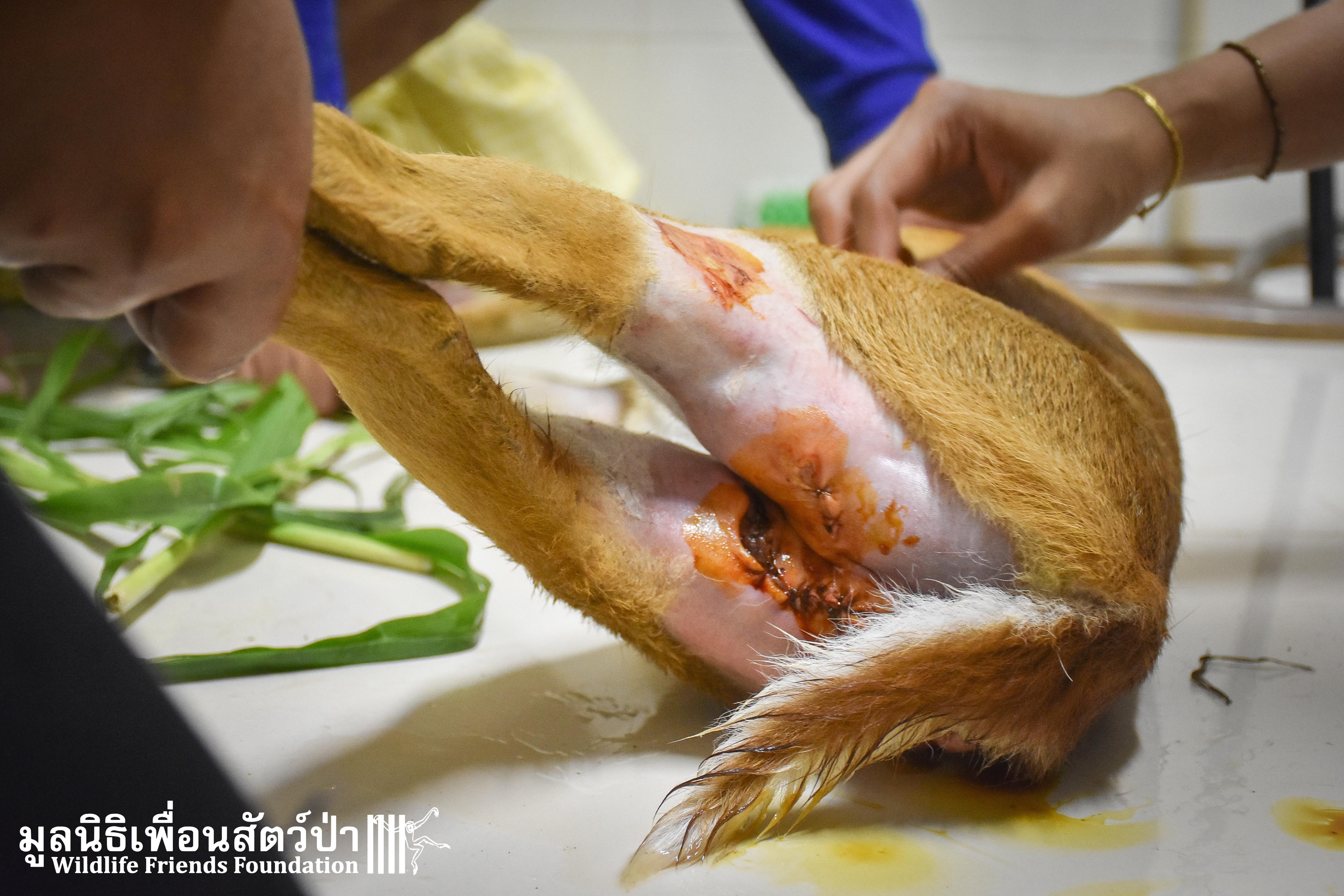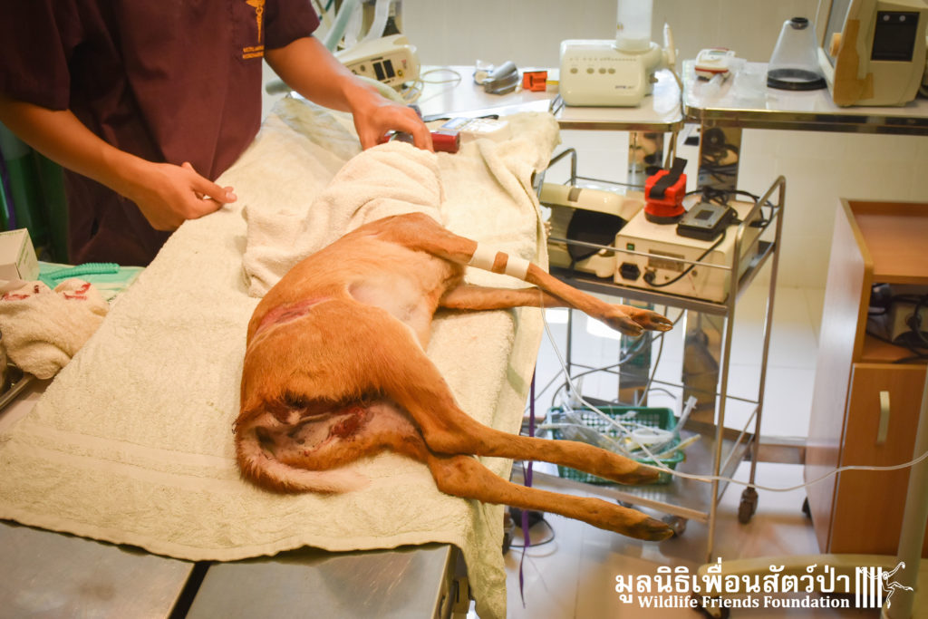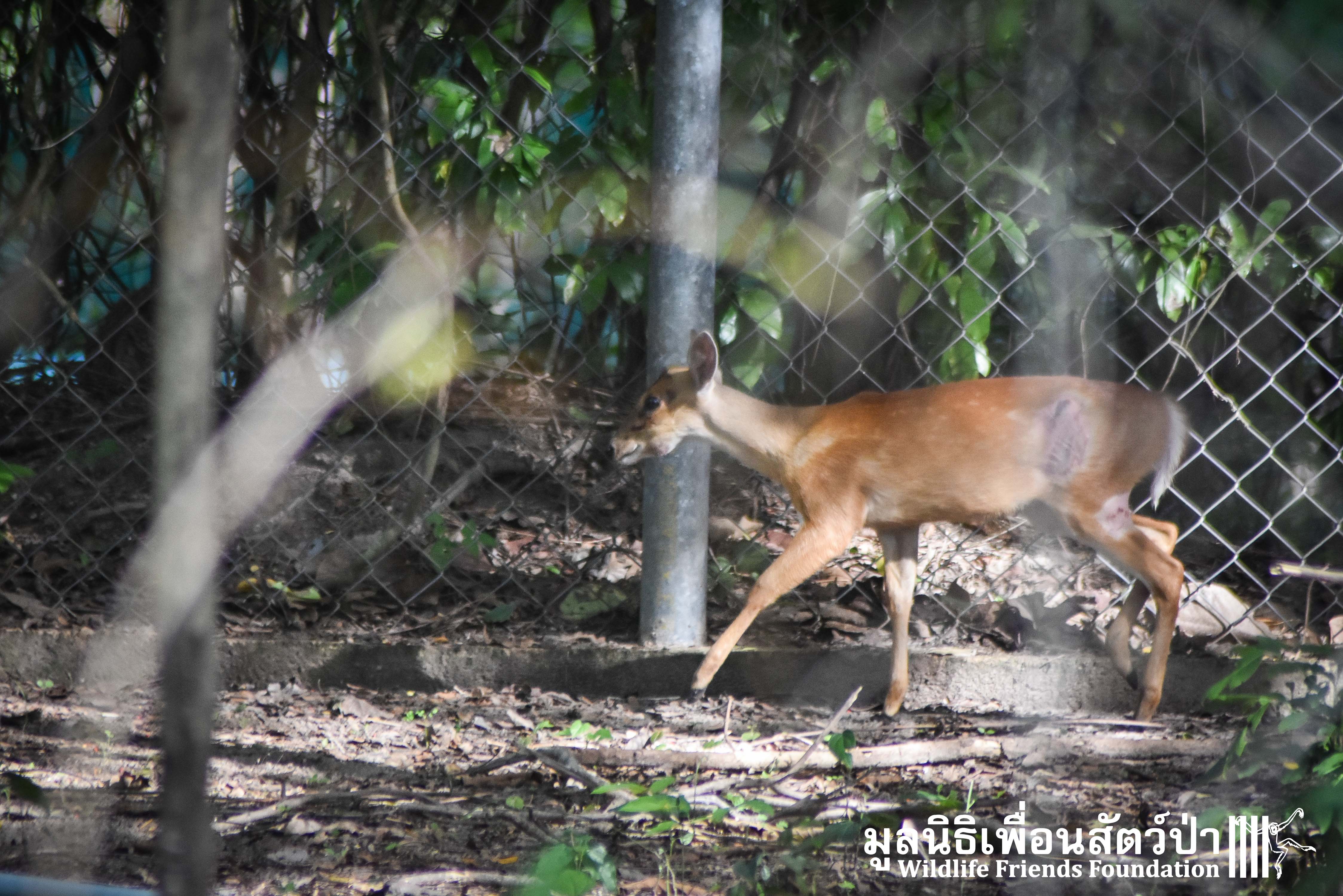 A few days ago an injured Southern red muntjac (Muntiacus muntjak curvostylis) was brought into to the WFFT Wildliife Hospital for urgent treatment after being attacked by a domestic dog. He had sustained numerous deep bite wounds, the vet team cleaned the wounds and stitched them up.