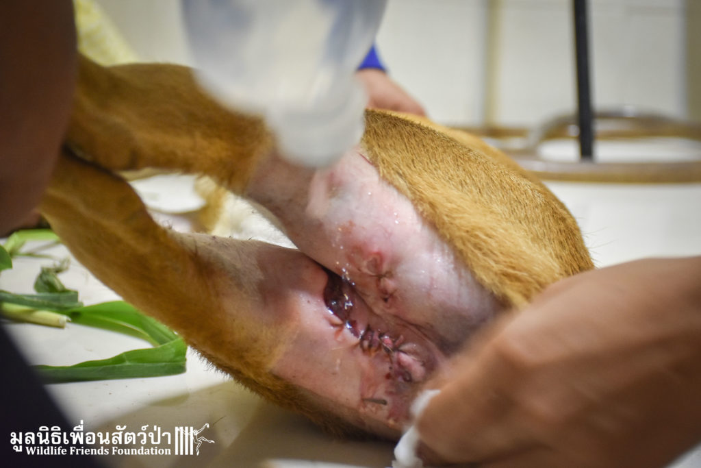 We have named him Keng. Keng is now recovering in an open forest enclosure at the WFFT Wildlife Rescue Centre. We are hopeful he will make a full recovery.