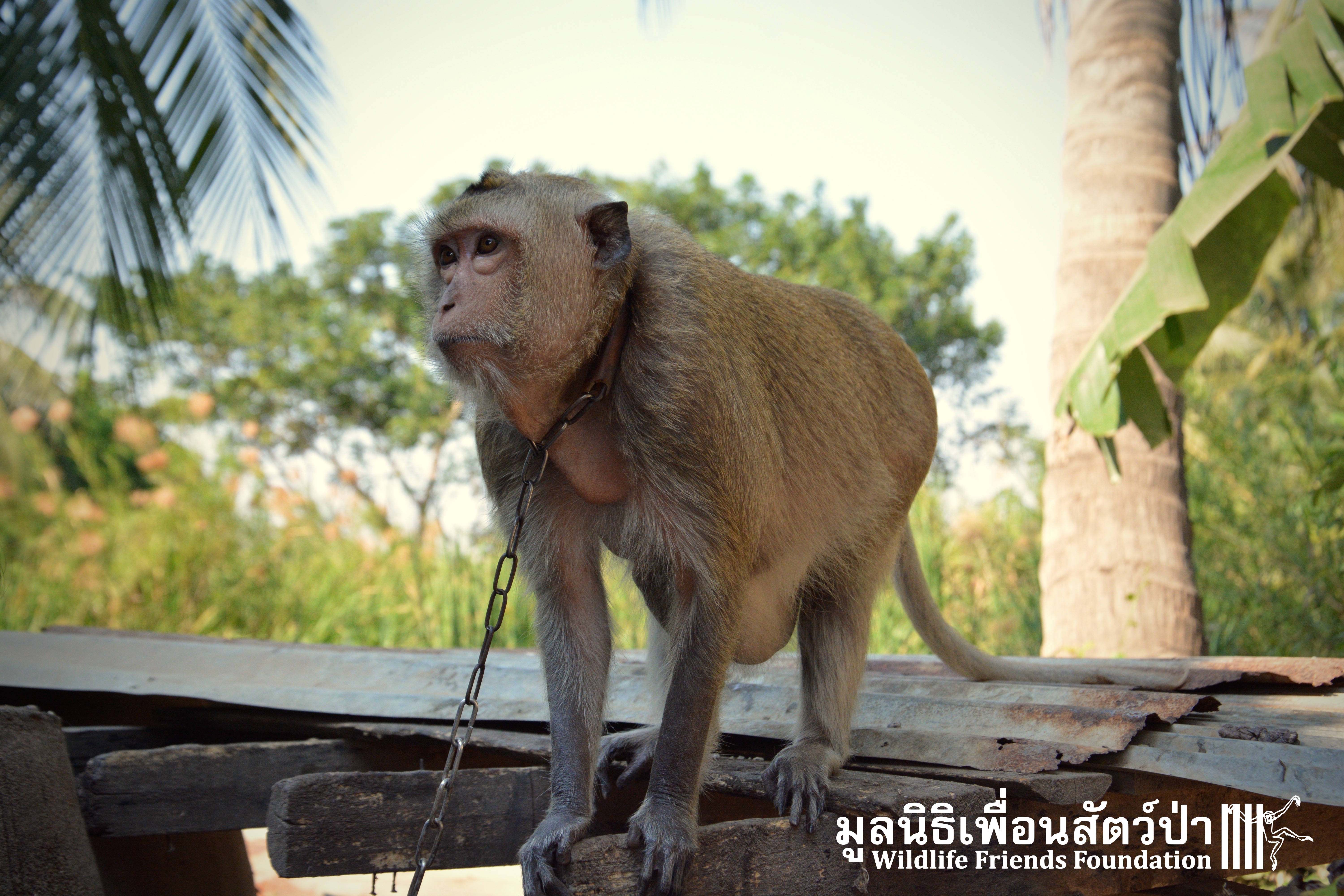 Yesterday we received a call about a macaque in need of help, so this morning the WFFT Rescue Team headed out to assess the situation. The macaque in question is ‘Mam’, a 10-year-old adult female long-tailed macaque (Macaca fascicularis), most likely caught from the wild as an infant to be sold as a pet. She has spent the last decade confined to a very short chain outside the home of her keeper. We were asked to help this macaque as the person that was keeping her had recently passed away; she therefore needed a new home.