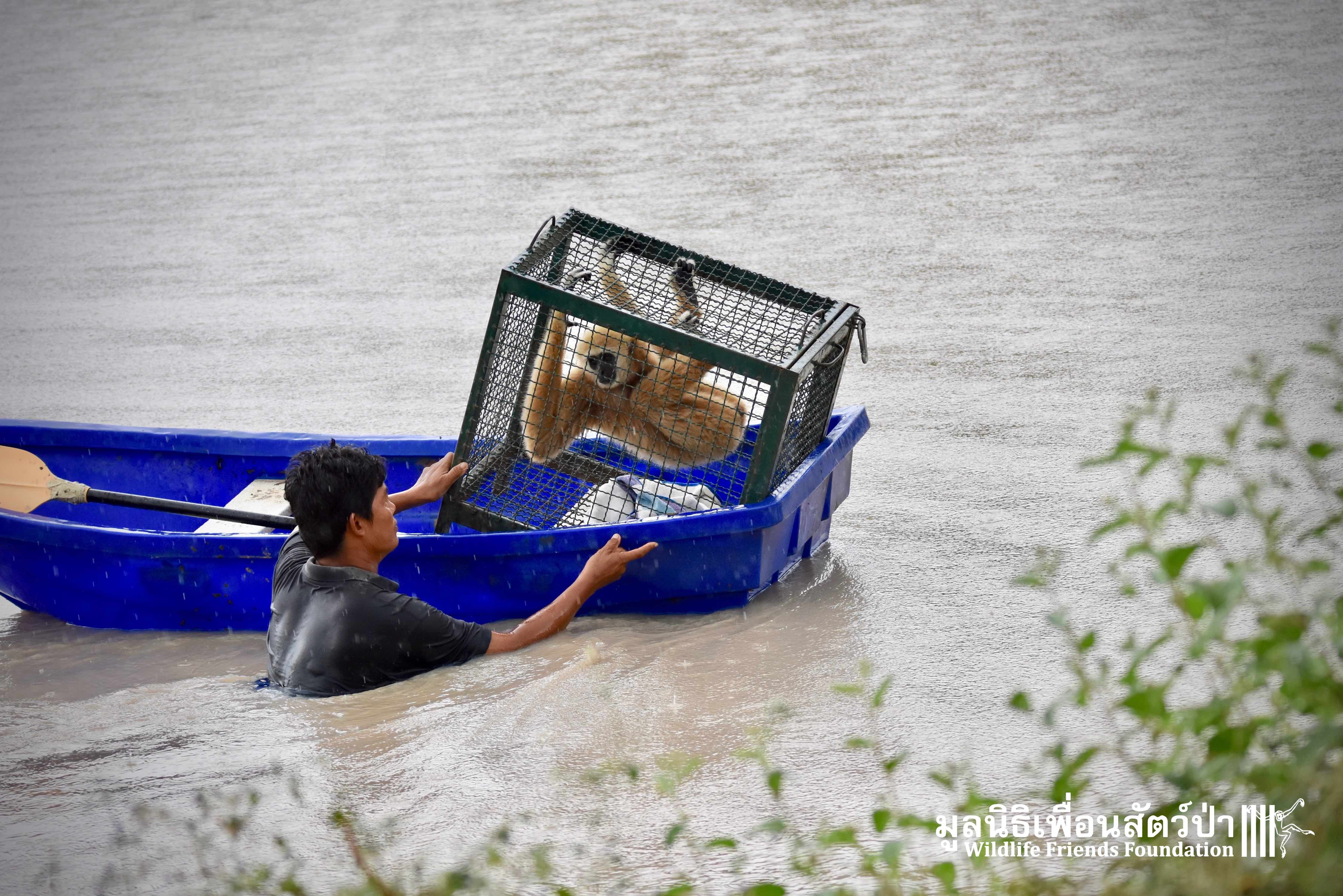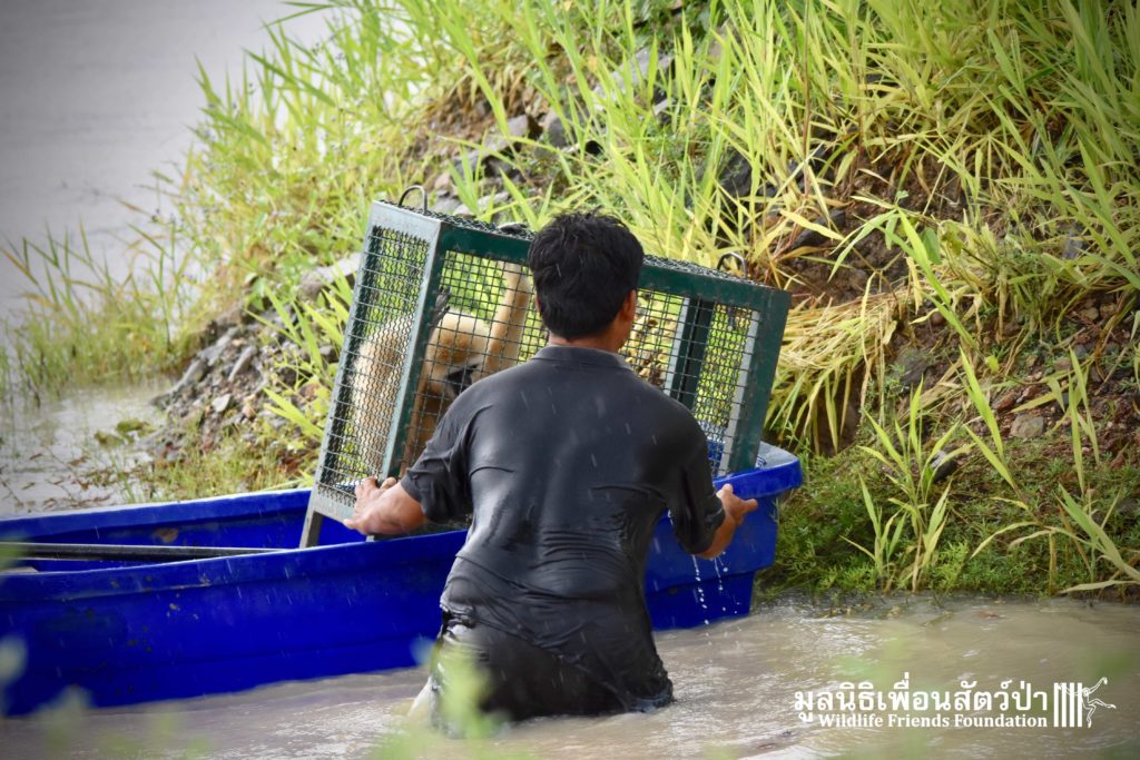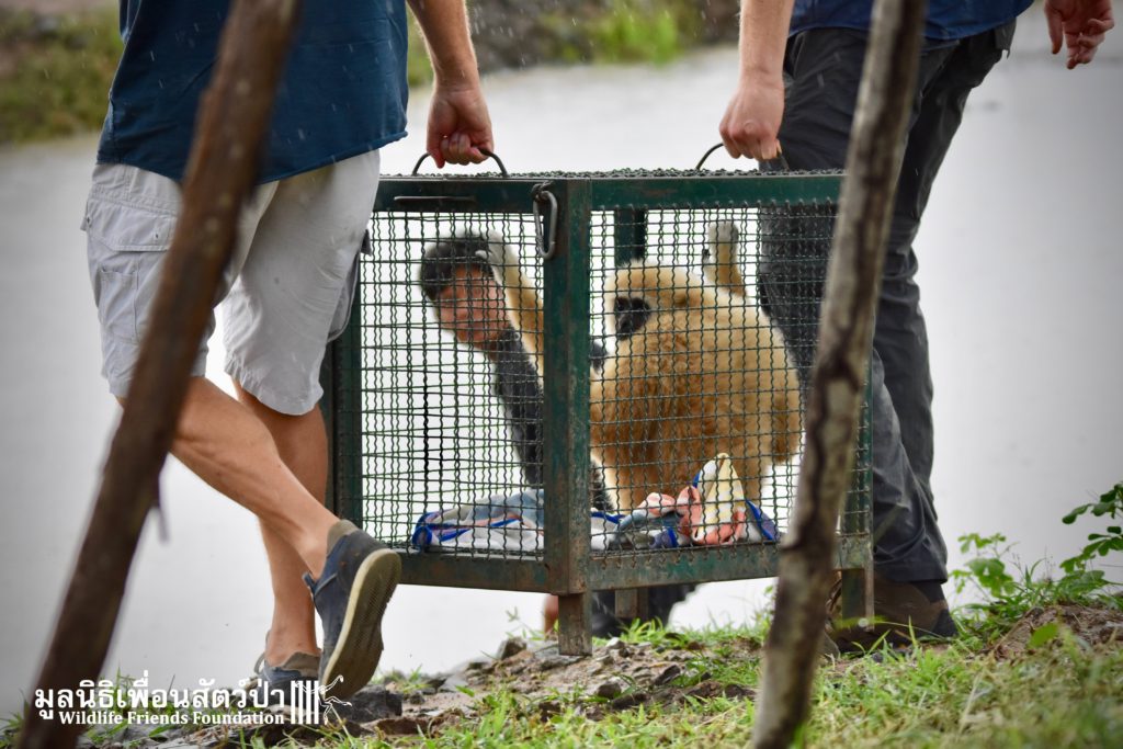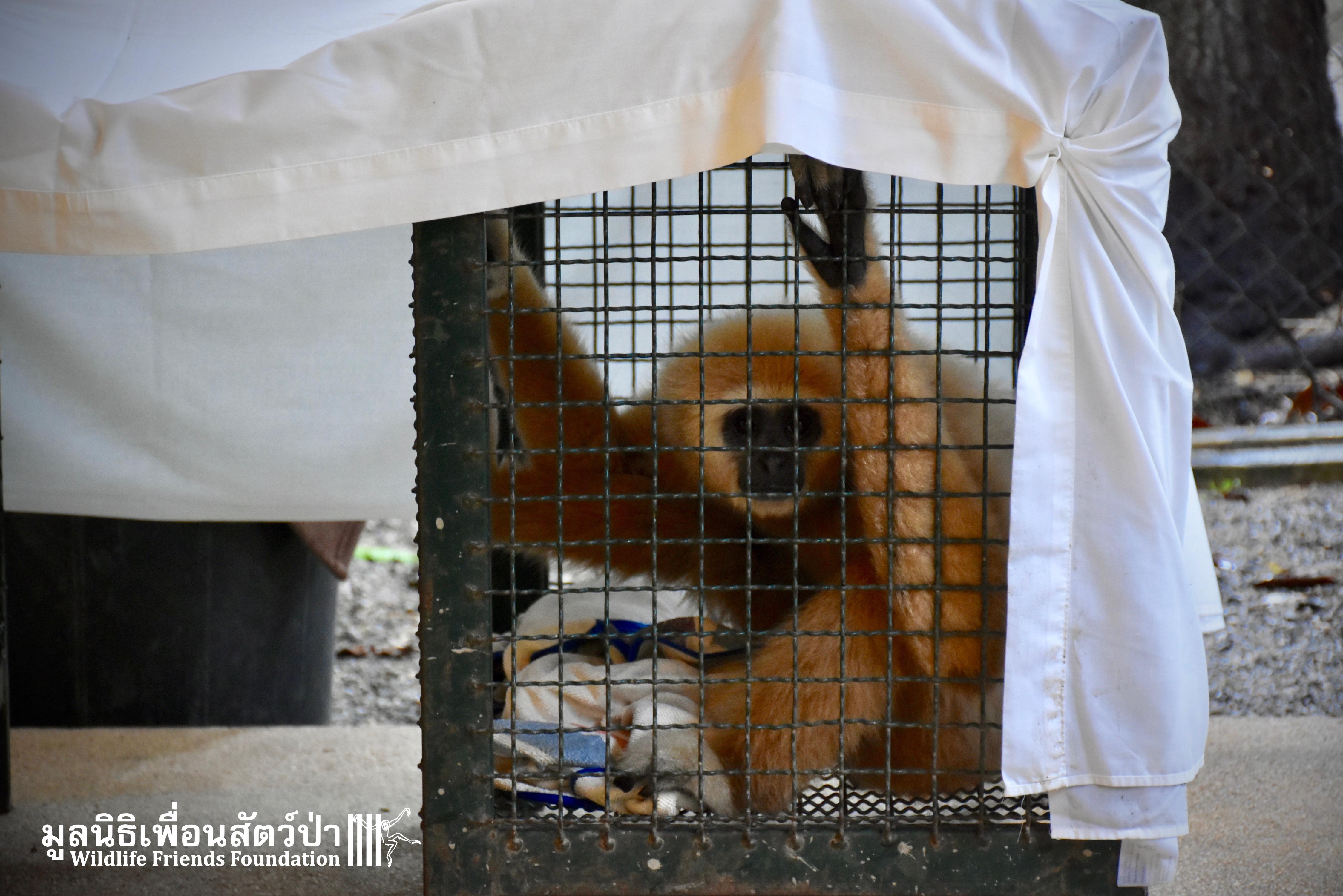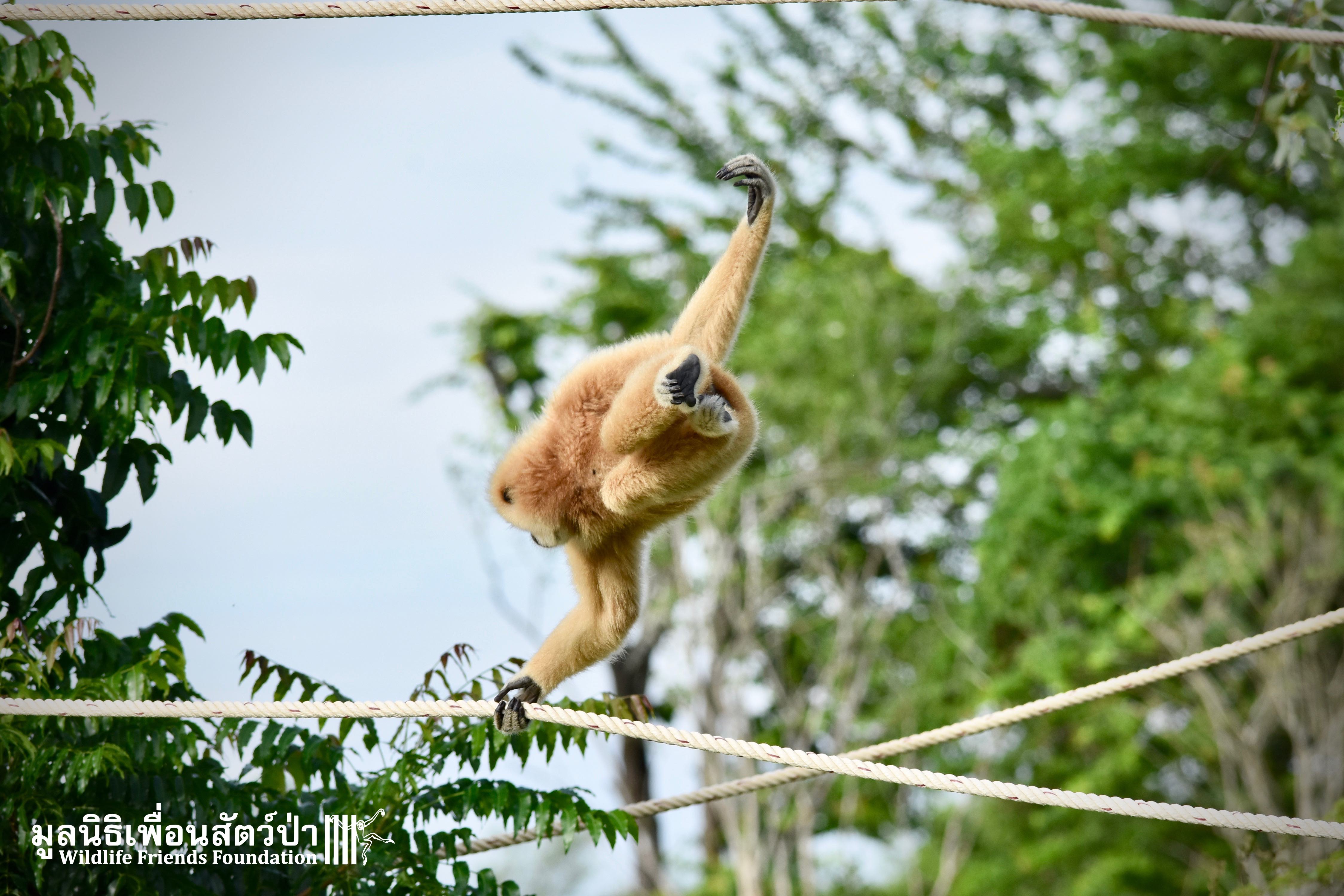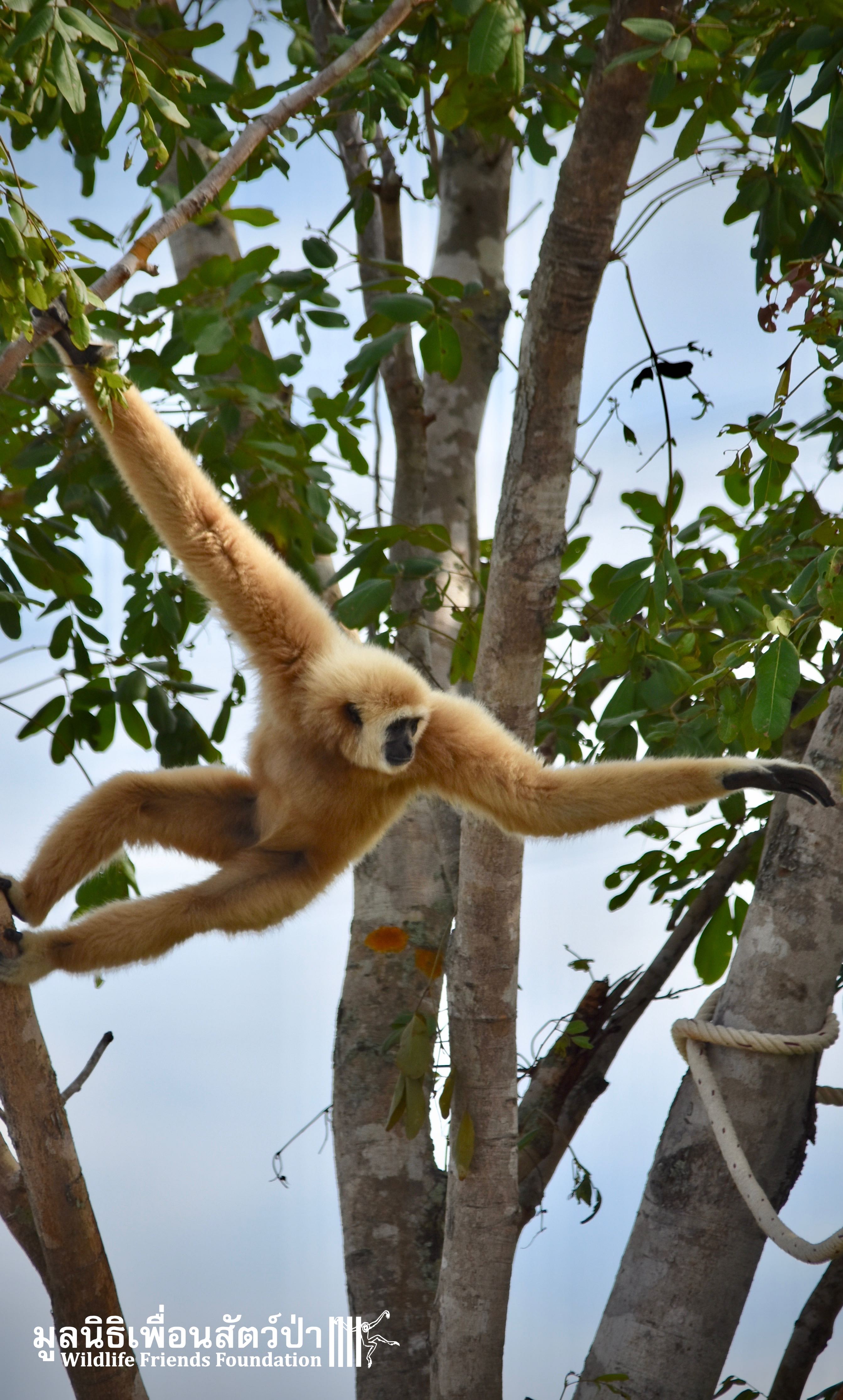 A few days ago, April, a 9 year old female white-handed gibbon who was rescued in 2009 (she has been brought at WFFT wildlife hospital by thai people who took her from market in Kanchanaburi, where she was apparently going to be eaten), and Whiskey, a 10 year old male white-handed gibbon rescued in 2009 too and who was kept as family pet, moved from their forest enclosure to a brand new Island in WFFT’s Project 4. What a joy to see them swinging, singing, eating, playing and just resting in their new home, next to Nemo’s island and with Malai Ngun, Chok Dee and Alicia (3 of our elephants) walking around.