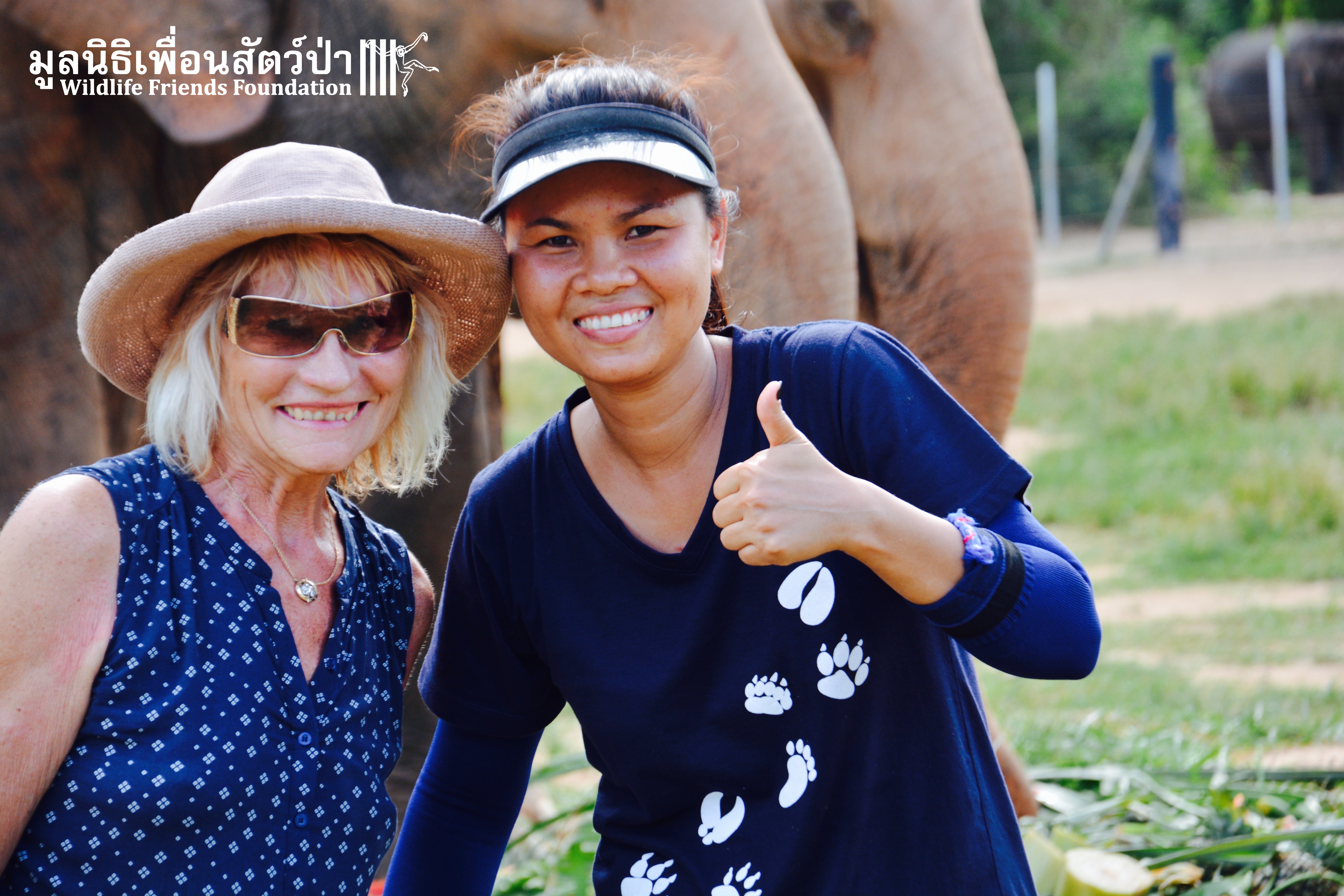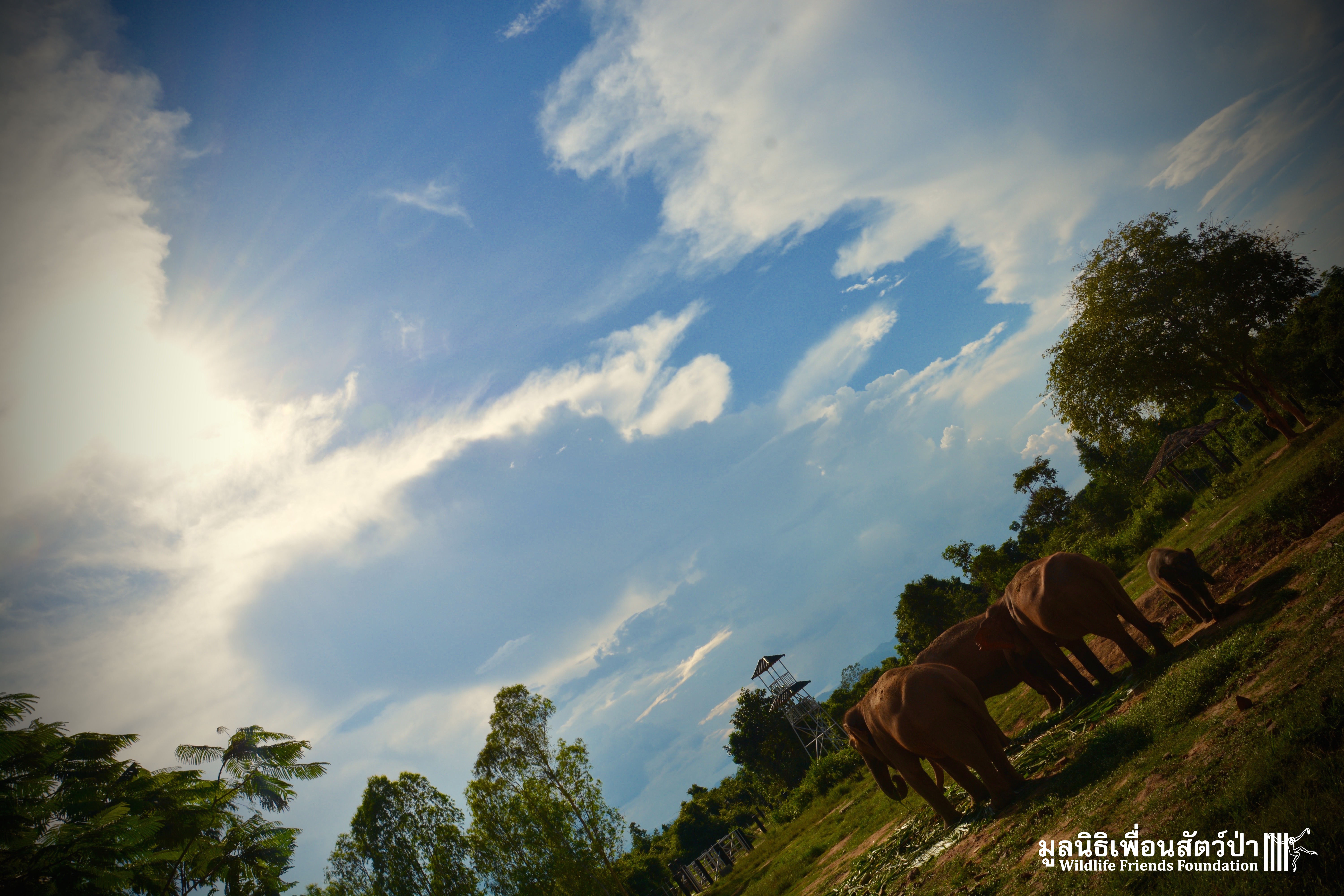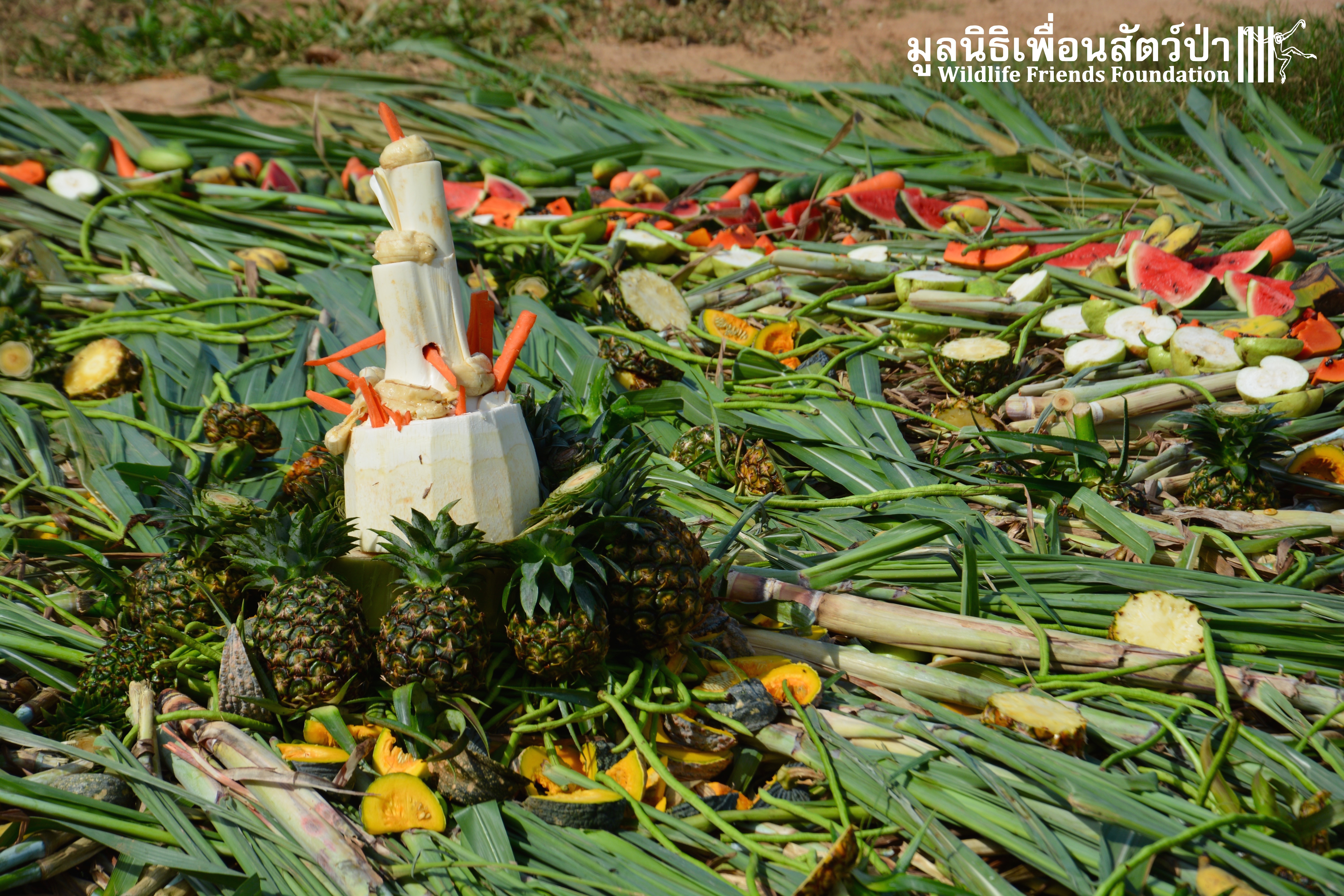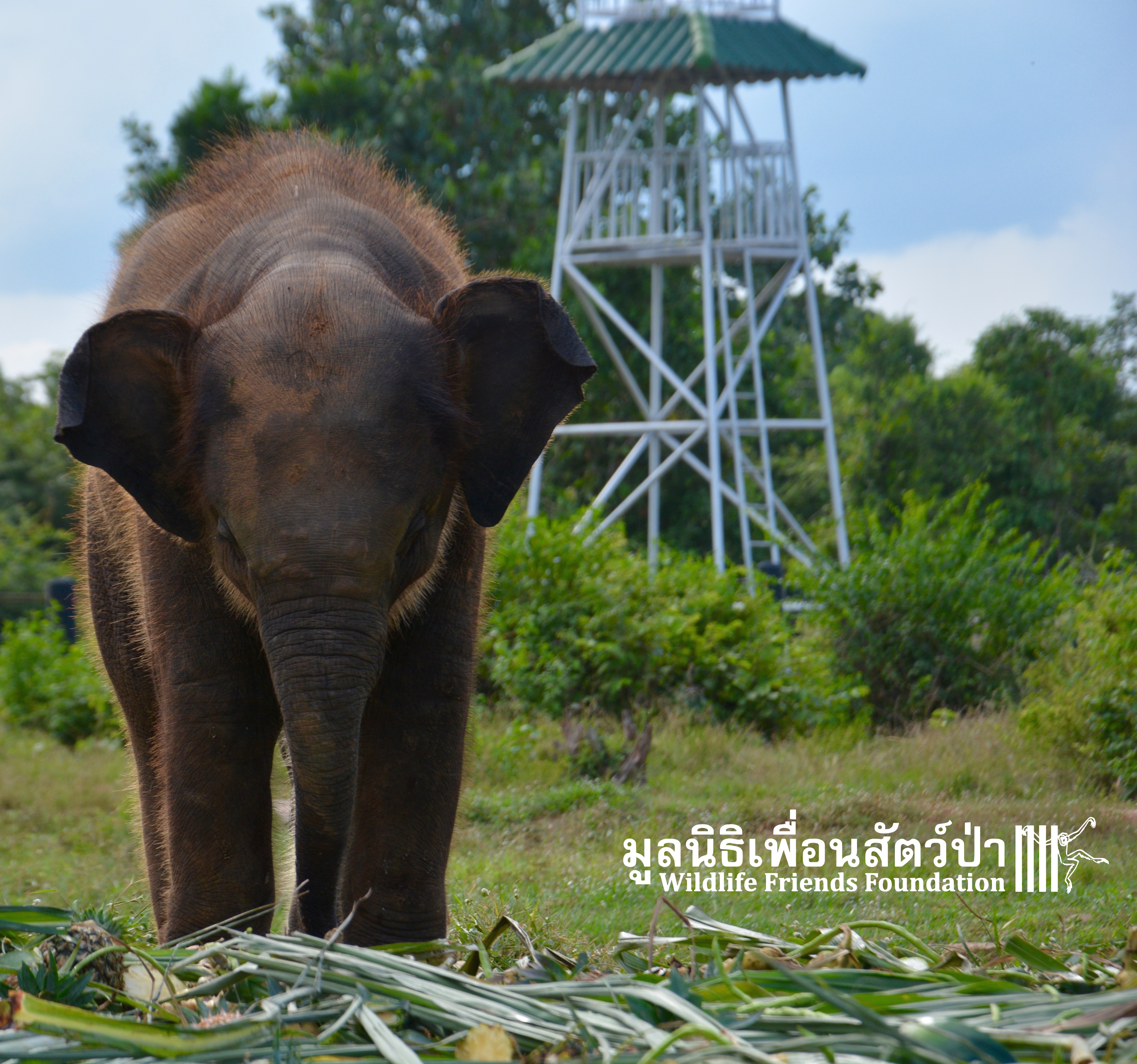 We recently celebrated baby Princesses (Pin’s) 1st birthday with a festivity of balloons, mountains of fresh fruit and an expertly carved bamboo birthday cake. Pin, her mother Pun and her two ever attentive aunties; Kaew Petch and La Ong Dao went into the grassland area of the WFFT Elephant Refuge while volunteers and the WFFT team lovingly prepared the birthday treats. Pin and Pun where rescued 5 months ago from a trekking camp where Pin was for sale. Pun gave birth to two calves previously, these calves were taken away from her at a young age. It was so heartwarming for us to be able to share the special day of her baby reaching a year of age together with her, and we very much look forward to many more happy birthdays! Among the guests at the party was Joan Pearson, a long-term supporter of WFFT whose generosity and fundraising has allowed us to progress to where we are now. Without the help of Joan and her friends we would not have been able to progress so profoundly as a foundation or provide such fantastic care for all the elephants at the elephant refuge. We would like to extend our deepest gratitude to Joan and her friends for everything they have made a possibility for us here at WFFT. Pin and her little family came running over to the birthday cake and spent the afternoon enjoying the treats whilst being wished a happy birthday by a chorus of adoring volunteers, guests and staff members. Wishing a very happy 1st birthday to beautiful Princess!!!