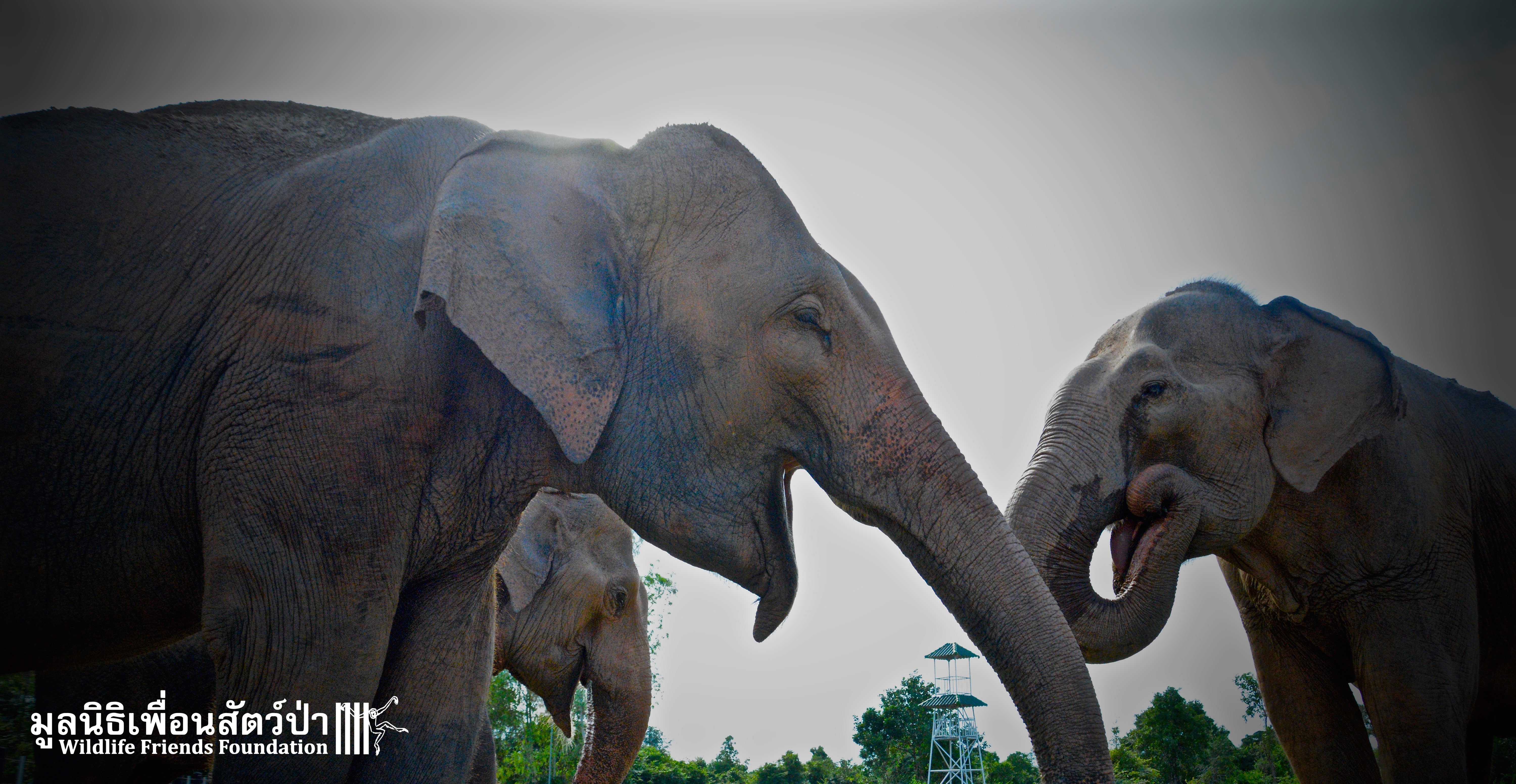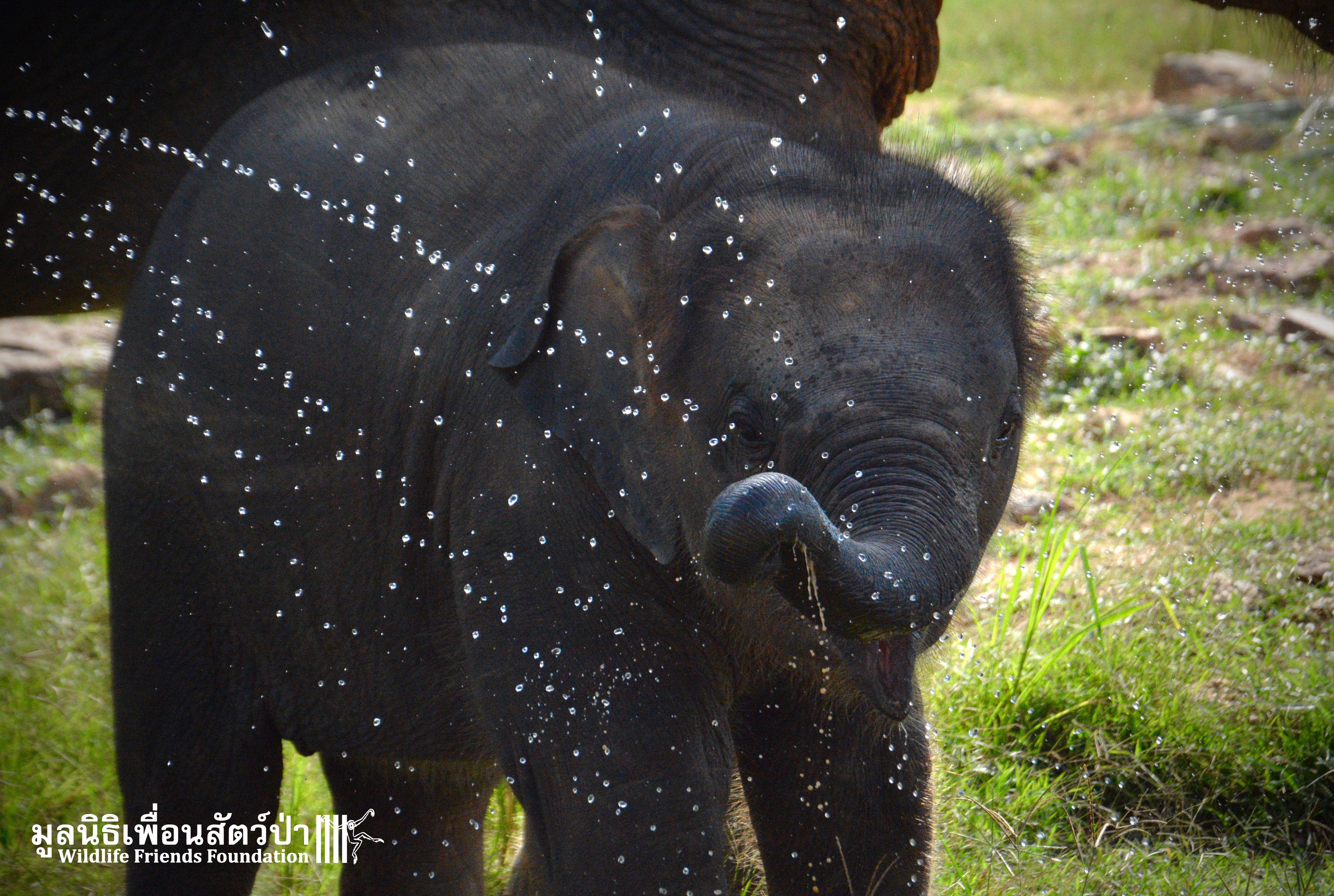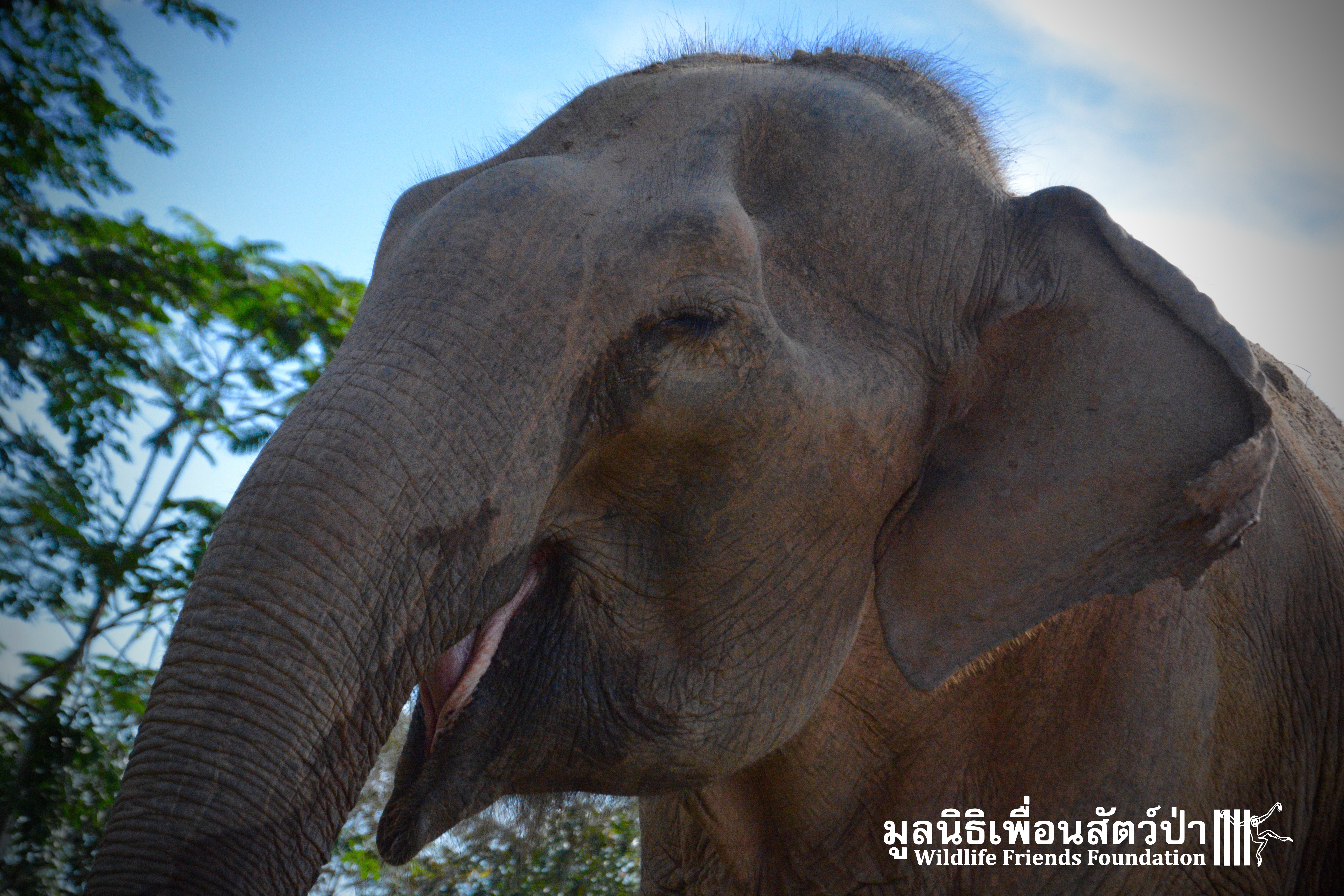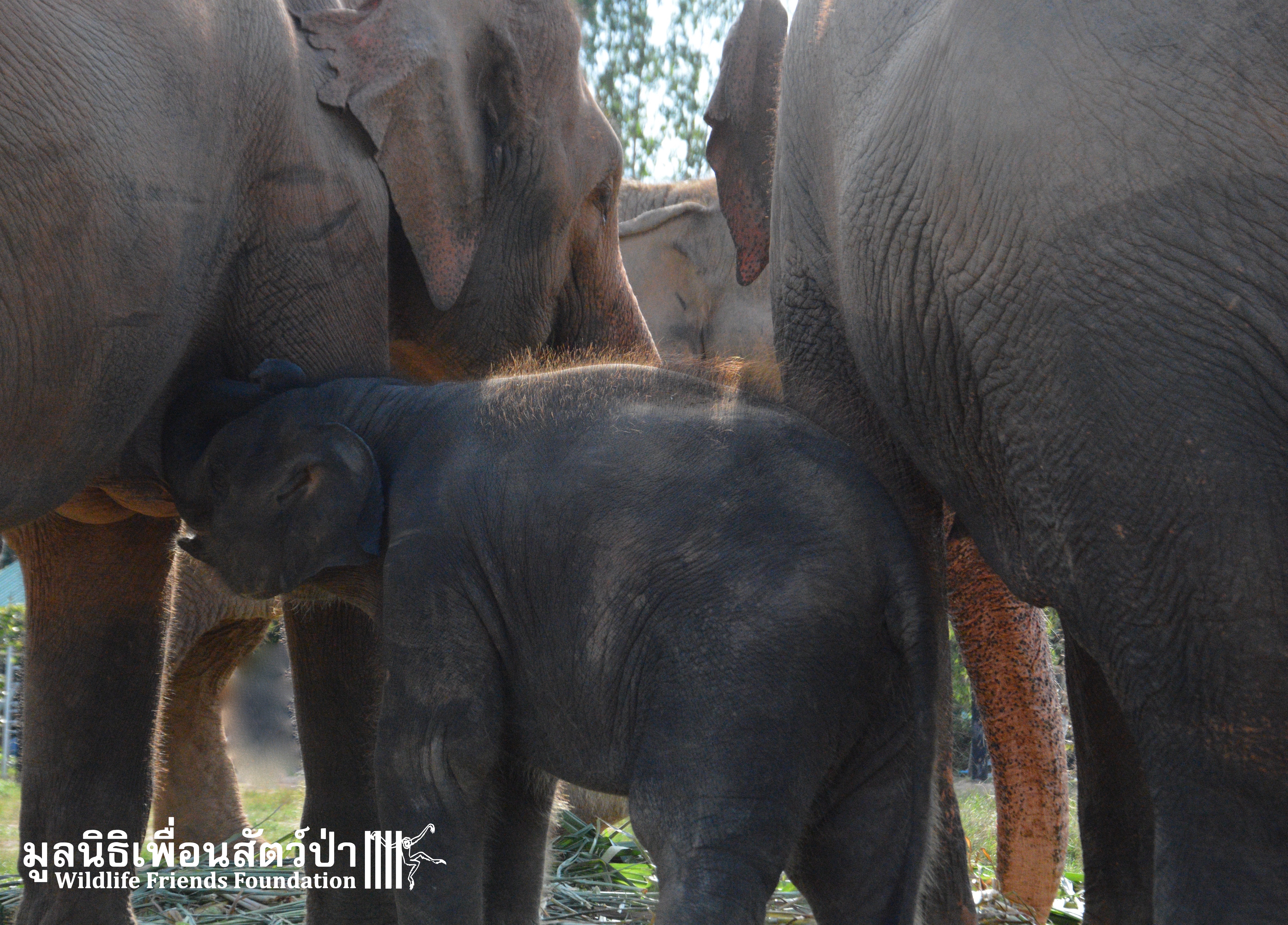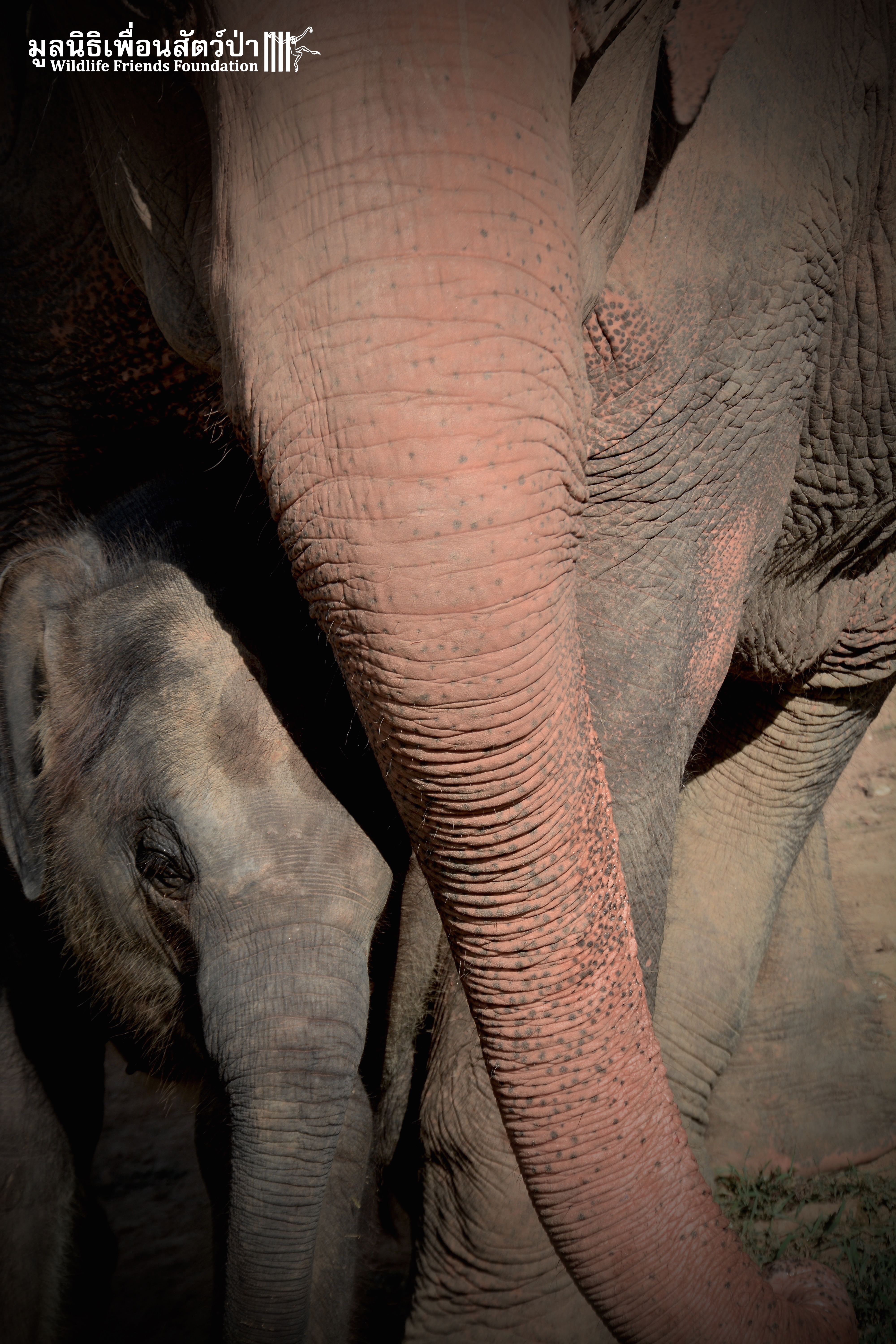 We recently celebrated baby Princesses (Pin’s) 1st birthday with a festivity of balloons, mountains of fresh fruit and an expertly carved bamboo birthday cake. Pin, her mother Pun and her two ever attentive aunties; Kaew Petch and La Ong Dao went into the grassland area of the WFFT Elephant Refuge while volunteers and the WFFT team lovingly prepared the birthday treats. Pin and Pun where rescued 5 months ago from a trekking camp where Pin was for sale. Pun gave birth to two calves previously, these calves were taken away from her at a young age. It was so heartwarming for us to be able to share the special day of her baby reaching a year of age together with her, and we very much look forward to many more happy birthdays! Among the guests at the party was Joan Pearson, a long-term supporter of WFFT whose generosity and fundraising has allowed us to progress to where we are now. Without the help of Joan and her friends we would not have been able to progress so profoundly as a foundation or provide such fantastic care for all the elephants at the elephant refuge. We would like to extend our deepest gratitude to Joan and her friends for everything they have made a possibility for us here at WFFT. Pin and her little family came running over to the birthday cake and spent the afternoon enjoying the treats whilst being wished a happy birthday by a chorus of adoring volunteers, guests and staff members. Wishing a very happy 1st birthday to beautiful Princess!!!