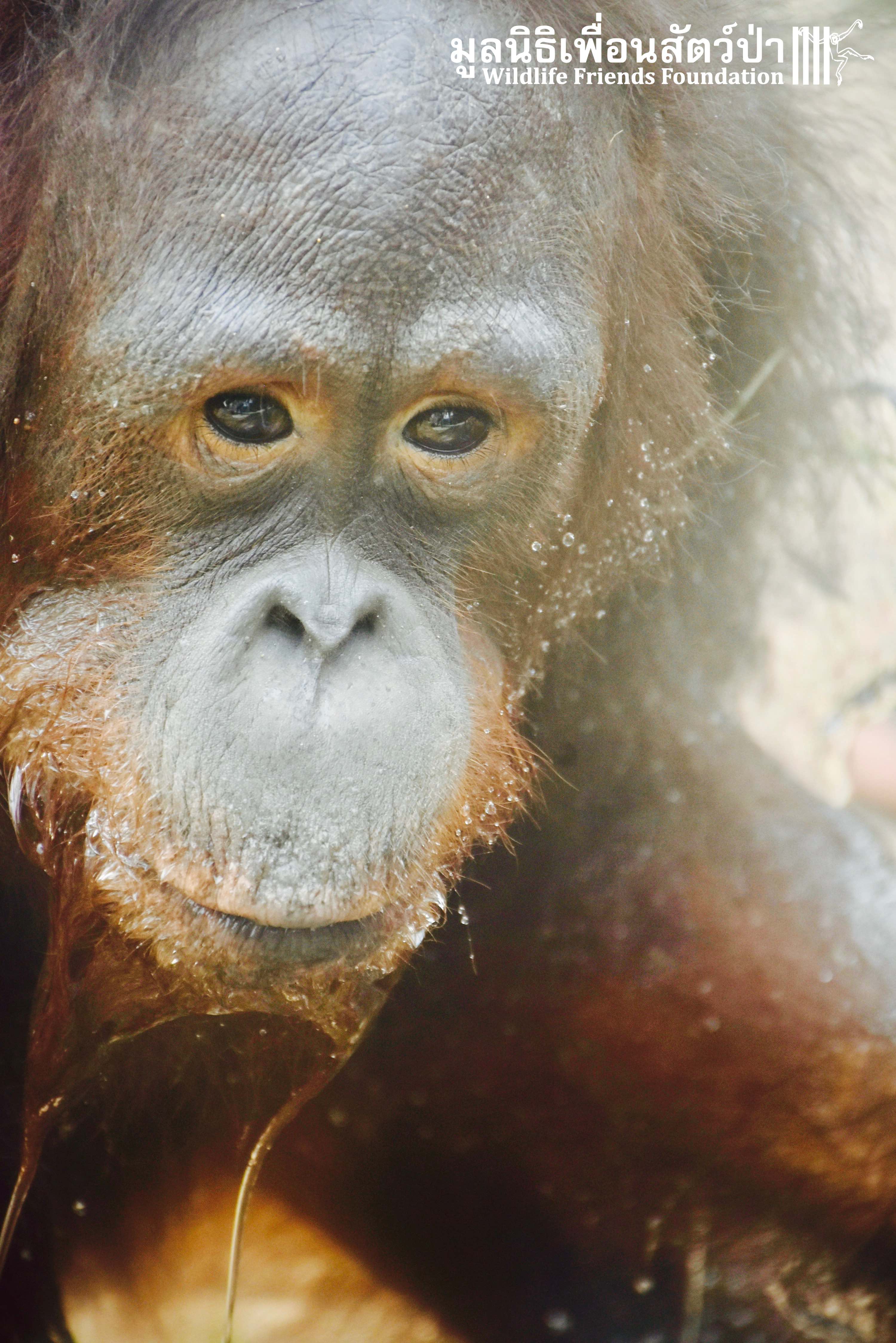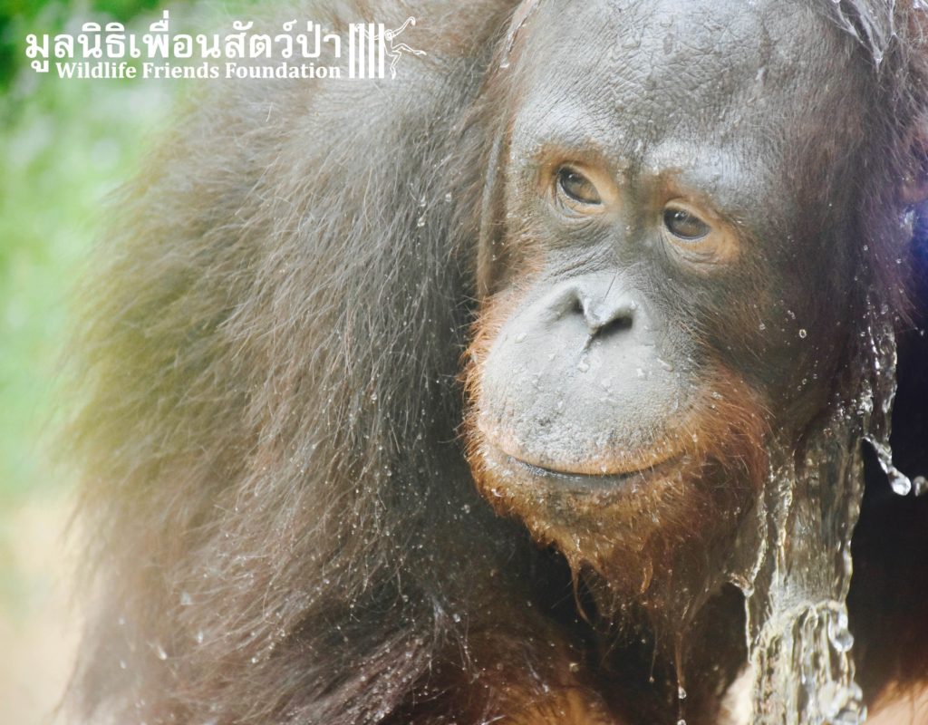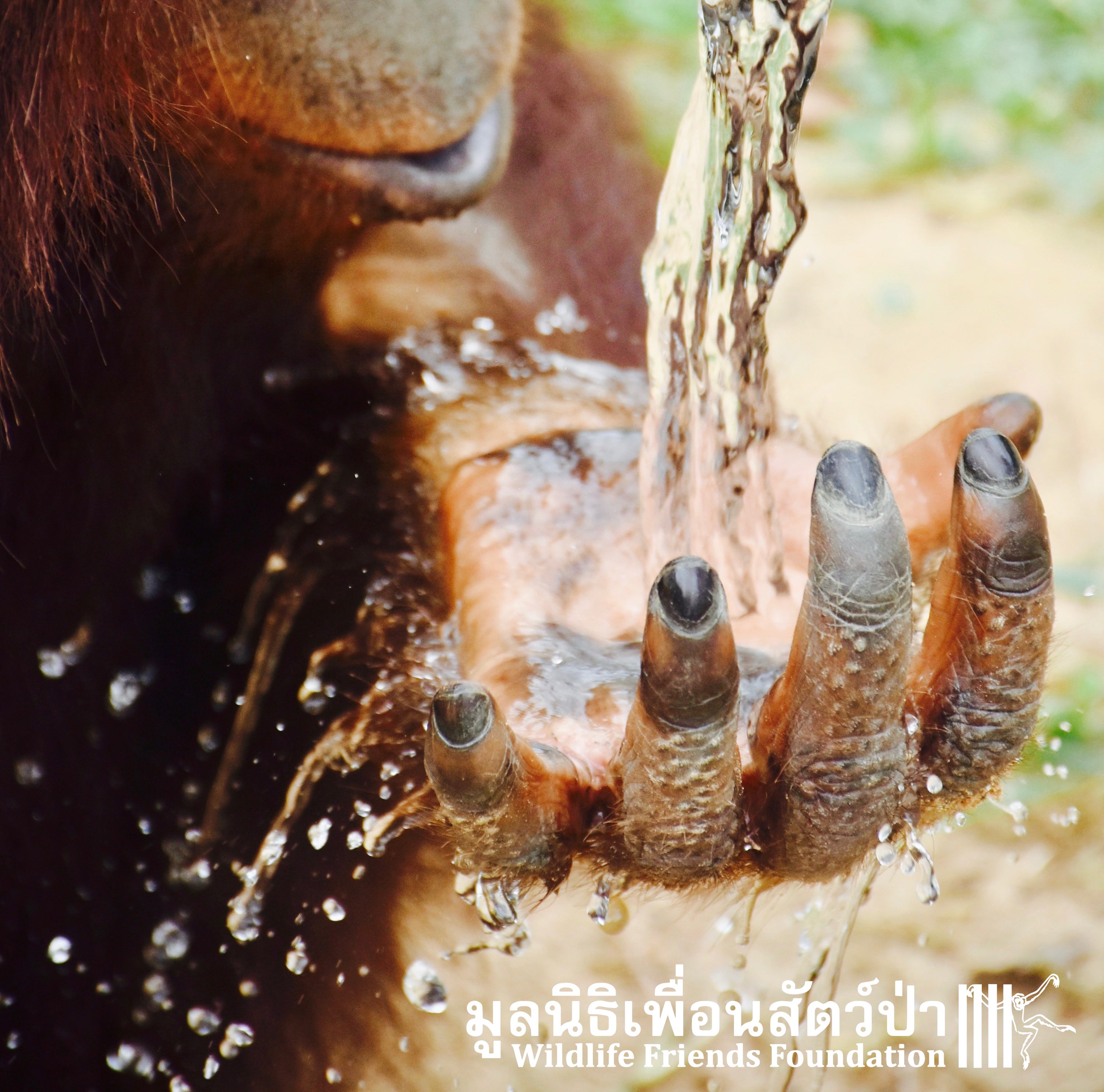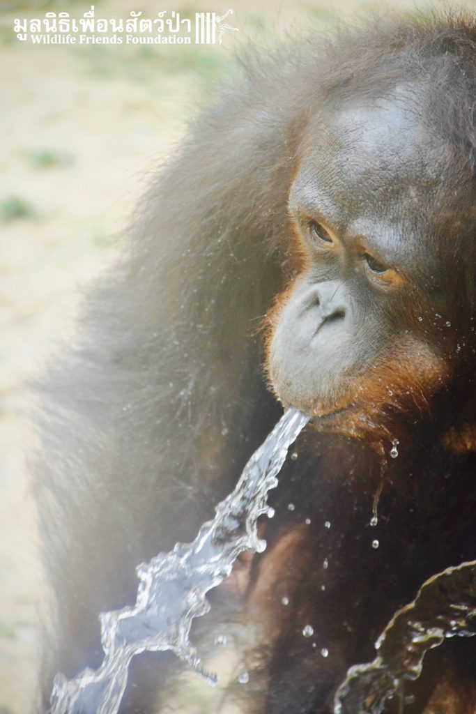 Here are some images of one of WFFT’s orangutan residents , Chico, enjoying a playful water moment in the new large open enclosure he is sharing with Maggie. This enclosure is a suitable environment for these very special intelligent great apes, and a constant source of amusement.