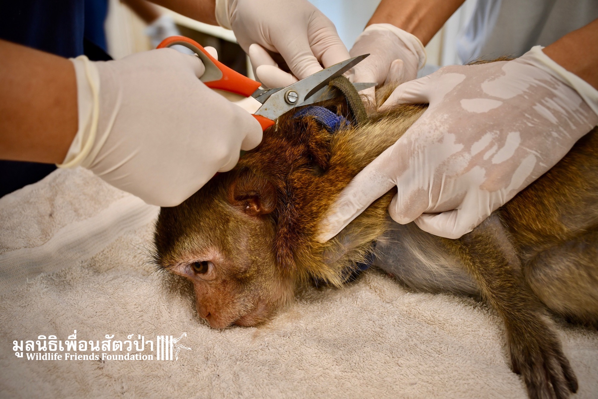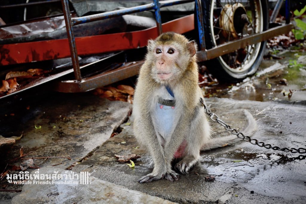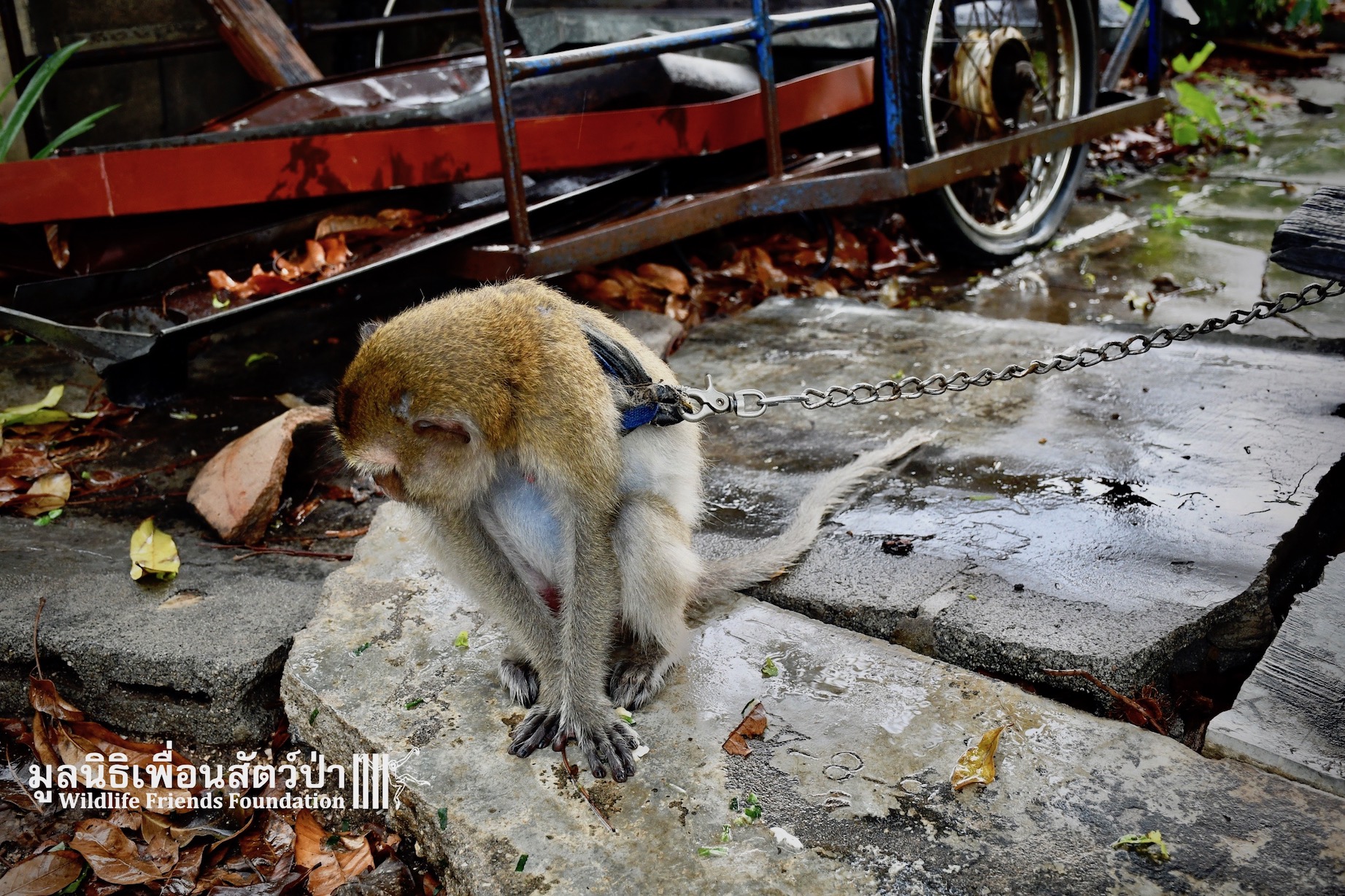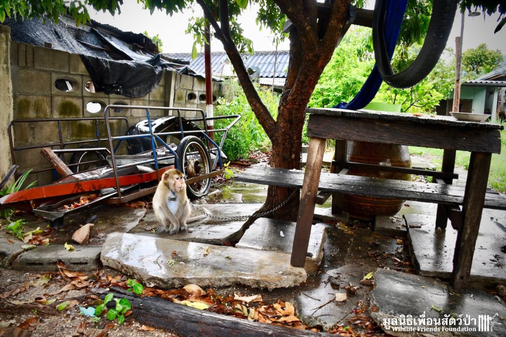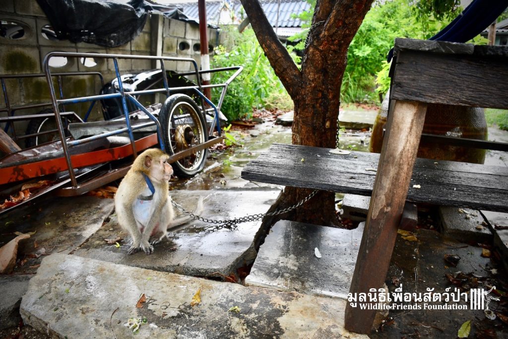 Maruay has been with us for 2 weeks now, she is undergoing a quarantine period at the WFFT Wildlife Hospital along with her two dolls. These dolls have been her only source of comfort over the years and she is very upset if separated from them. Imagine having no other friends, no other monkeys to socialize with, and some plastic dolls as a replacement. Luckily here at WFFT we have some other elderly monkeys which we hope to introduce her to in the not to distant future.
