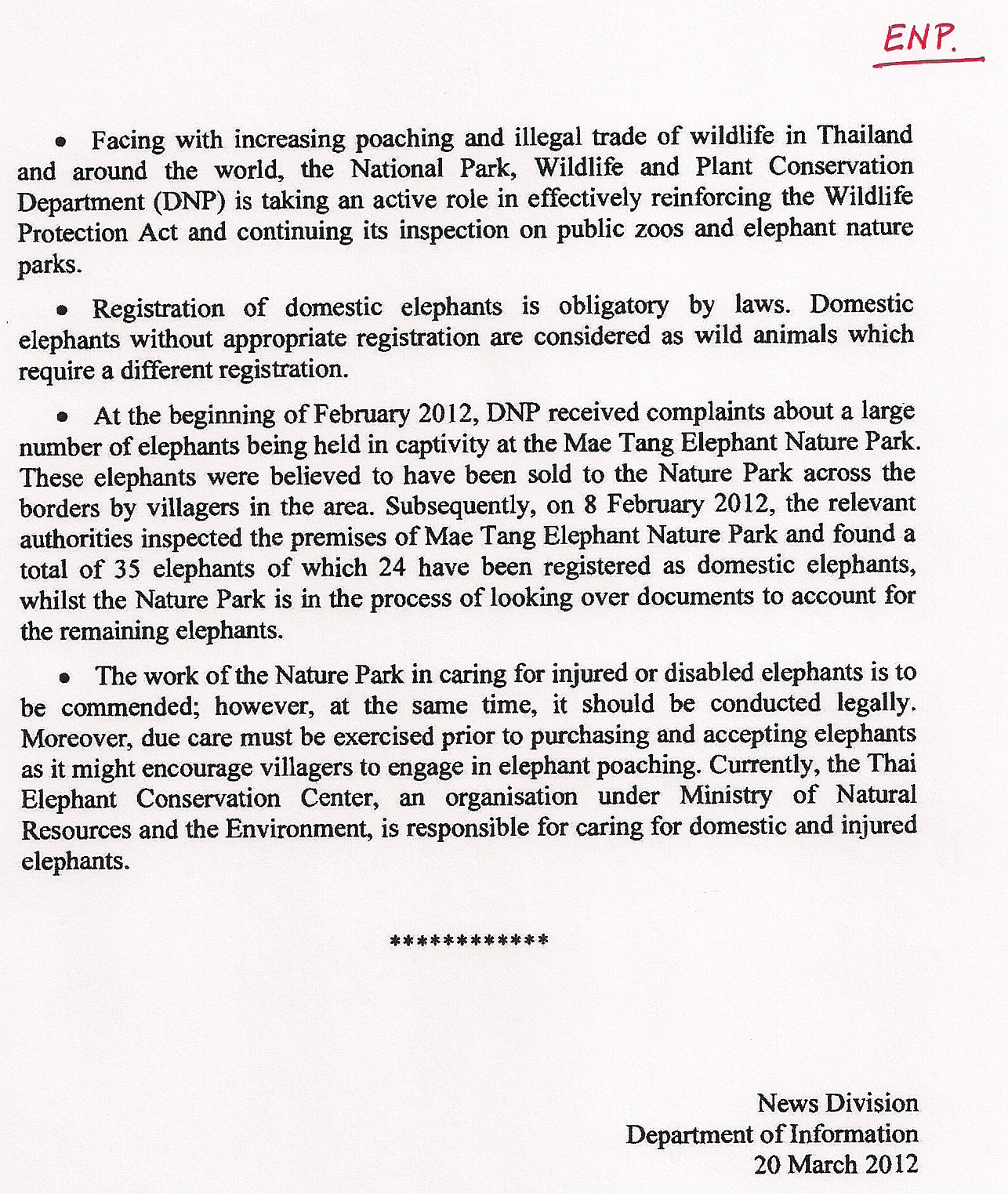 It is mentioned in the press release of the DNP through the department of information that ENP purchased elephants from across the border, which would be in clear defiance of the CITES regulations and laws, if the DNP is willing to state this rather slanderous accusation we assume they have evidence of this?