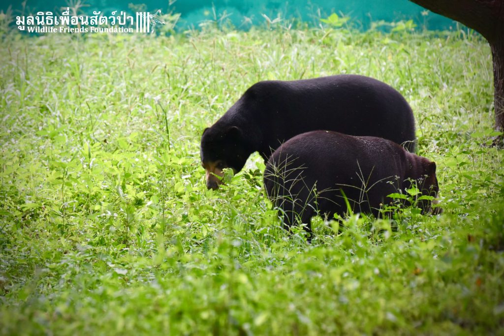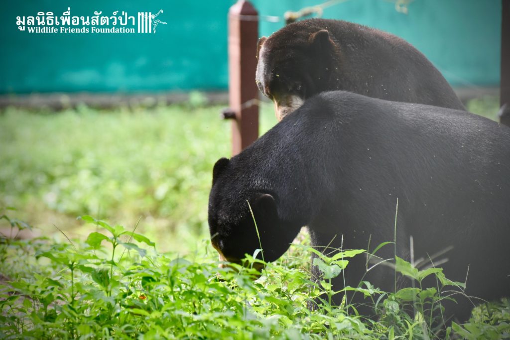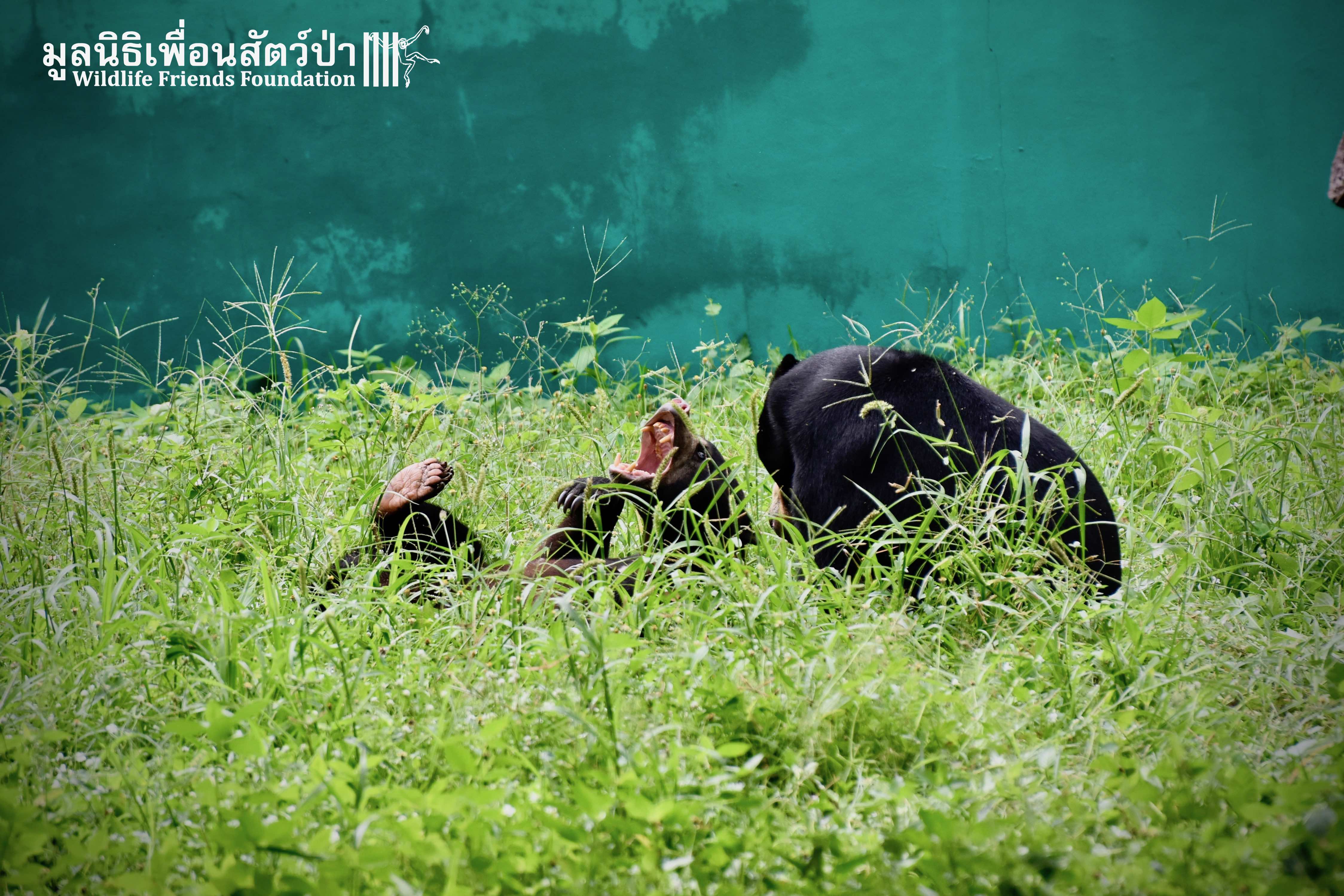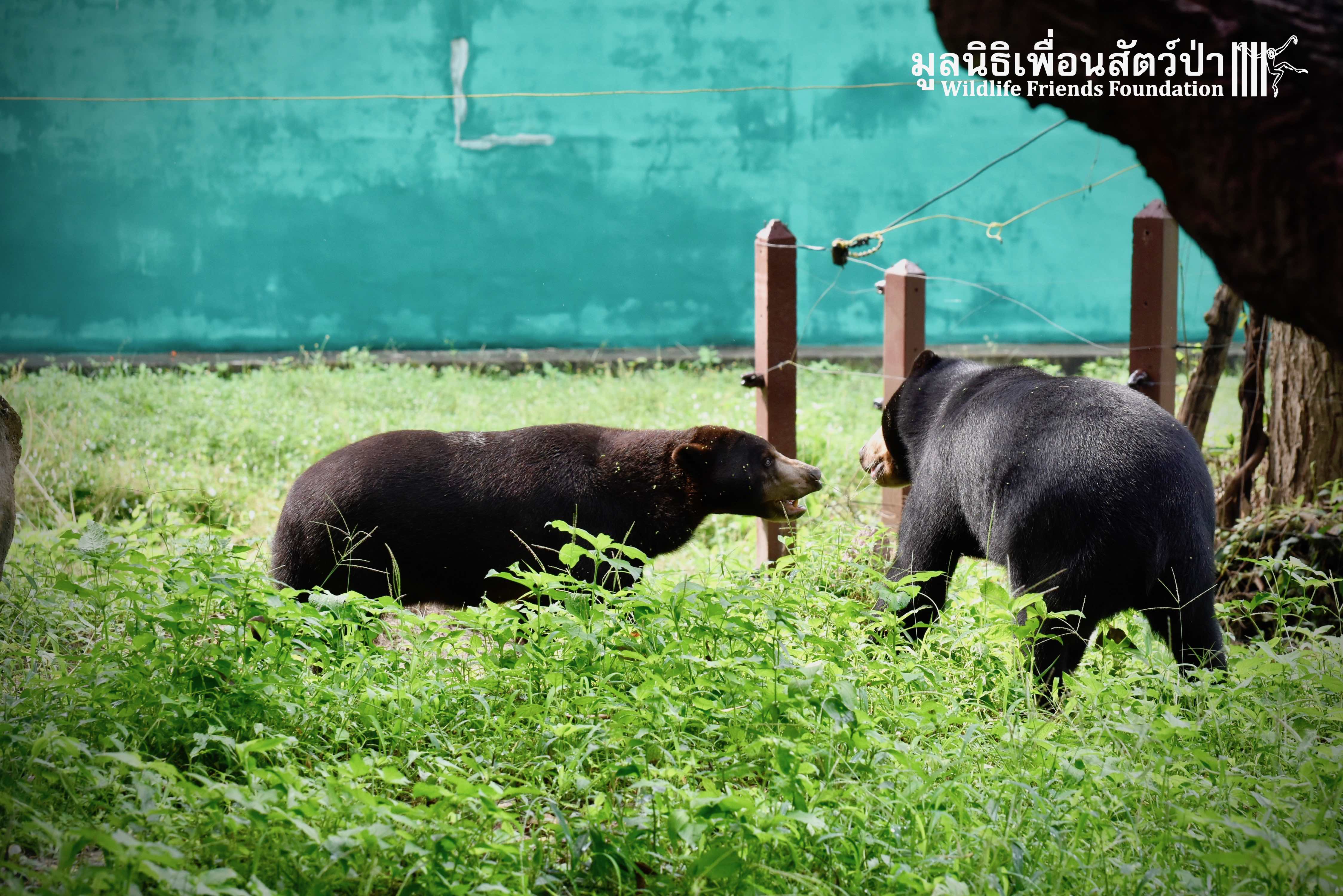 Back in 2008, some villagers poached a male Malayan sun bear (Helarctos malayanus) cub from a forest area near Laos, with the intention of selling him as a pet. They could not find a buyer quick enough, so they dumped him at Wat Klong Sai Nung , a temple near Thayang, when they were afraid of being caught by the police. At the temple, the monks hand-reared Kaka and kept him in an enclosure with a group of dogs. When he was rescued by WFFT he was 30kg, at just over one years of age. He was barking like a dog whilst in quarantine, but then calmed down when he was introduced to Gallamair, a 2-year-old female sun bear. Kaka became instant friends.