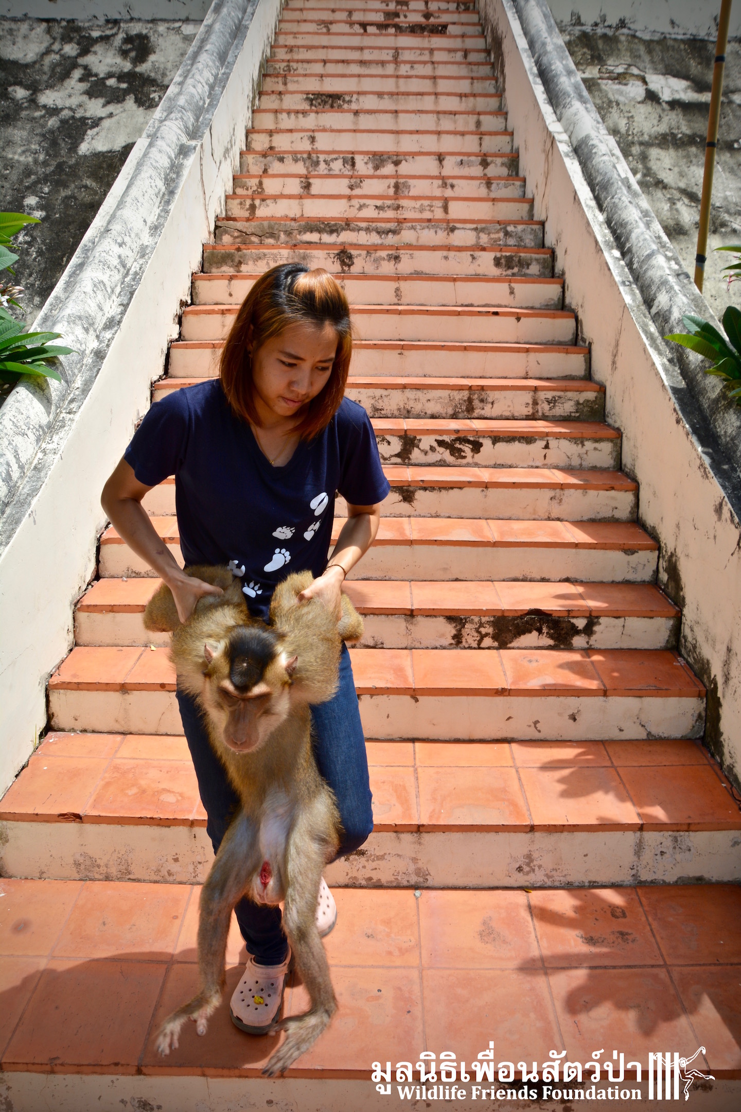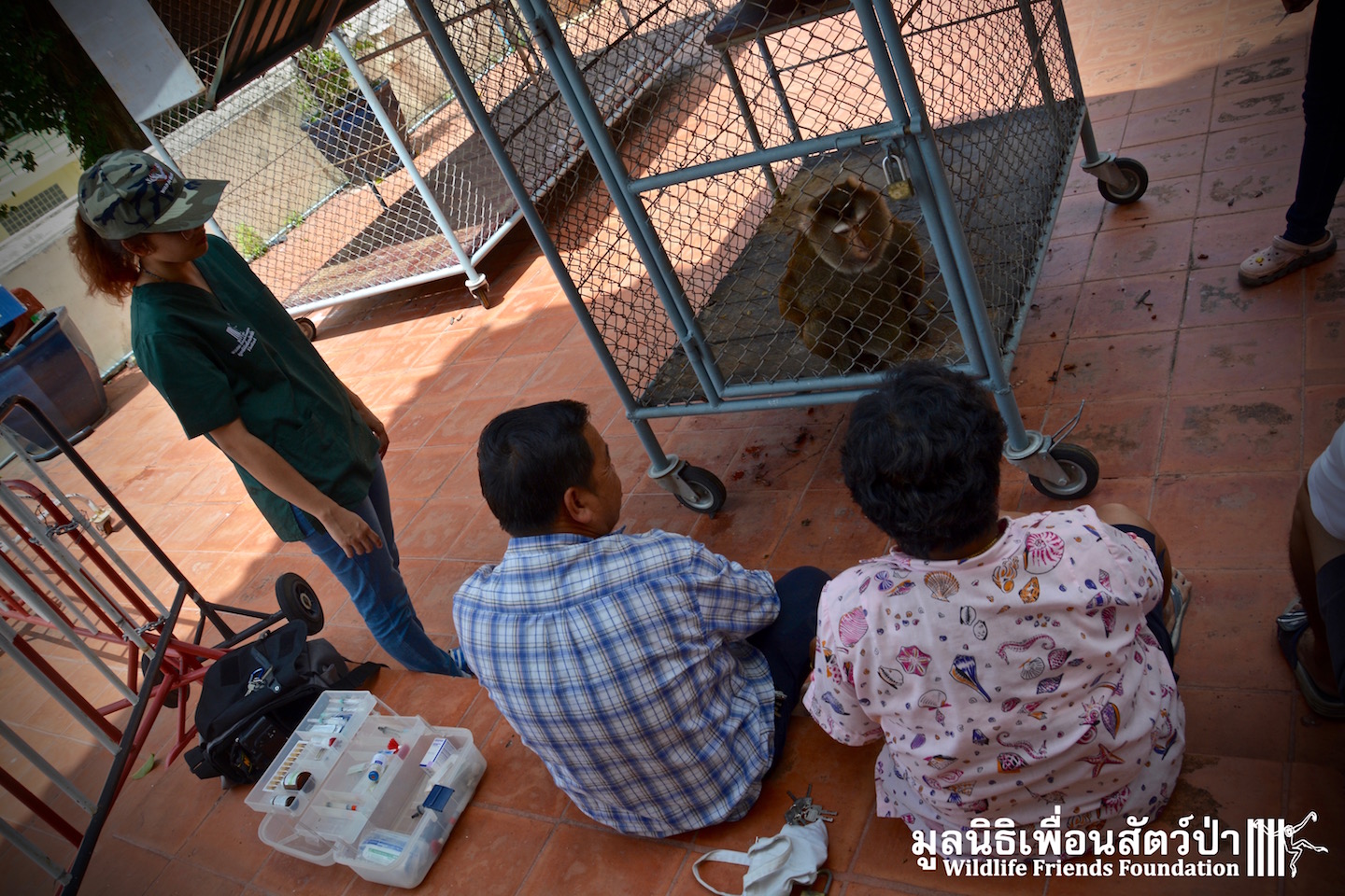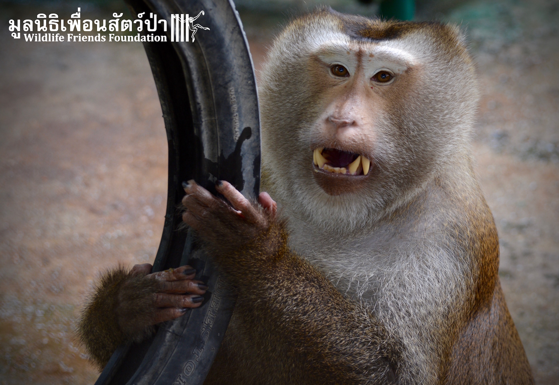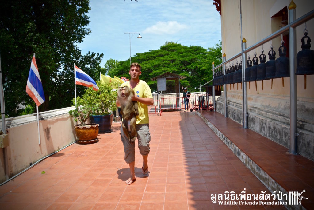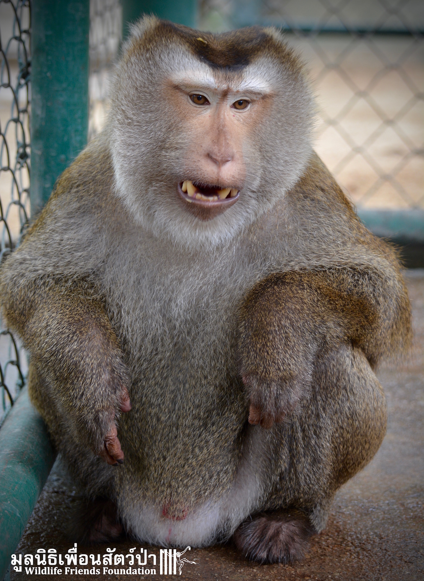 Two days ago we received a call from staff at a temple in Phetchaburi regarding two unwanted male macaque residents they could no longer care for, during the initial conversation we were informed that the macaques were both around two years old, and easy to handle. The WFFT Rescue Team headed out to investigate. Upon arrival this was not the case, the macaques in question are both strong and aggressive adult male pig-tailed macaques. ‘See Nguen’ (Silver) is an eight-year-old Southern pig-tailed macaque (Macaca nemestrina) and ‘Gold’ (See Thong) is a four-year-old Northern pig-tailed (Macaca leonina).