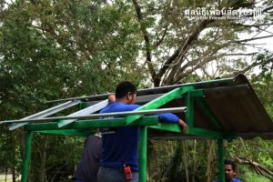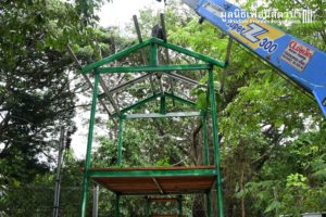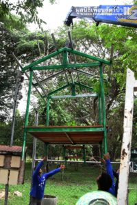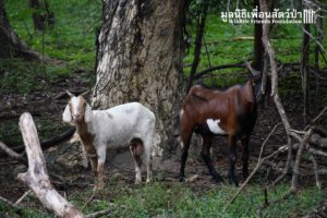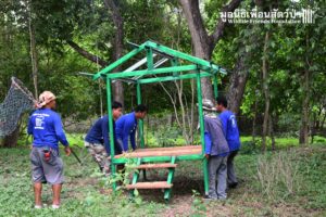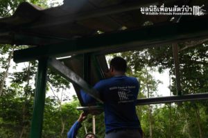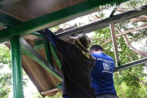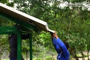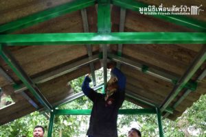 The rainy season has officially arrived in Thailand and everybody is getting ready to weather the storm. Our staff has been busy building a new house for Gruff and Geraldine, our rescued goats. This new house will give them a dry place to hide so they can make it through this season without getting sick!