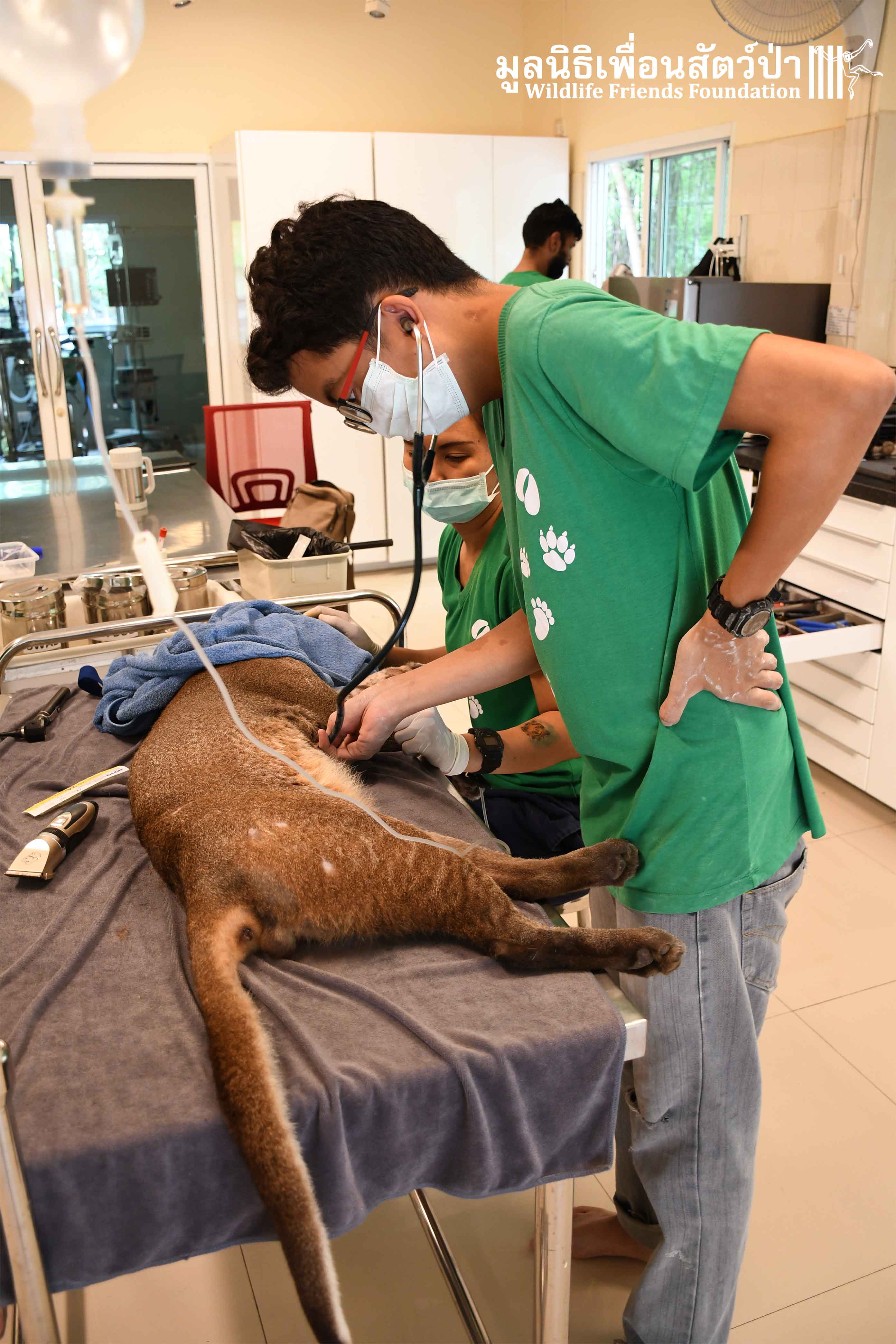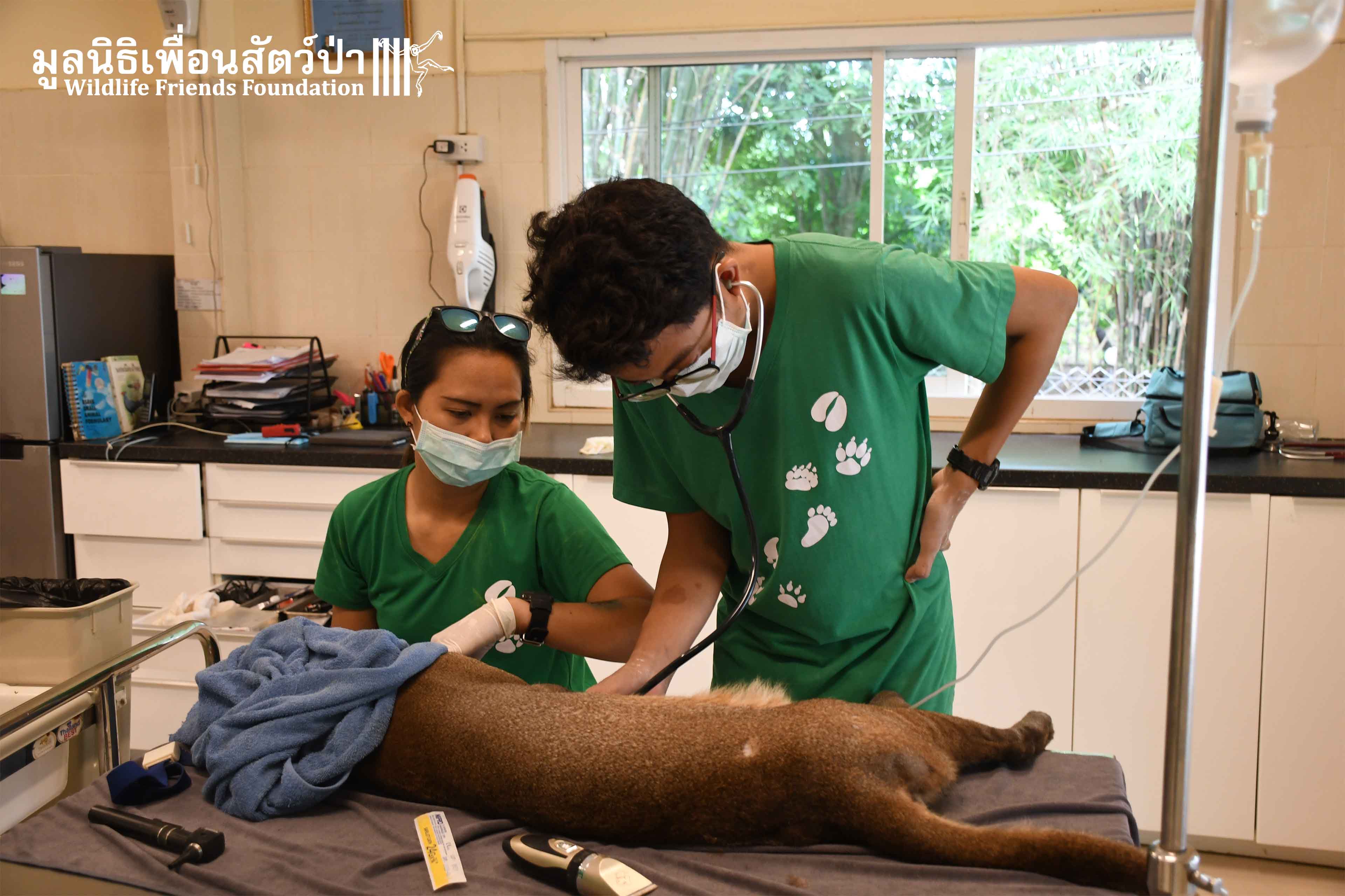 ขั้นตอนต่อไปทีมสัตวเเพทย์ WFFT จะค่อยๆปรับพฤติกรรมจากสัตว์เลี้ยงให้มาเป็นสัตว์ป่าให้มากที่สุดเเละจำเป็นต้องดูแลผู้ใหญ่ไฟอย่างใกล้ชิดเพื่อรักษาโรคพยาธิหนอนหัวใจต่อไป
