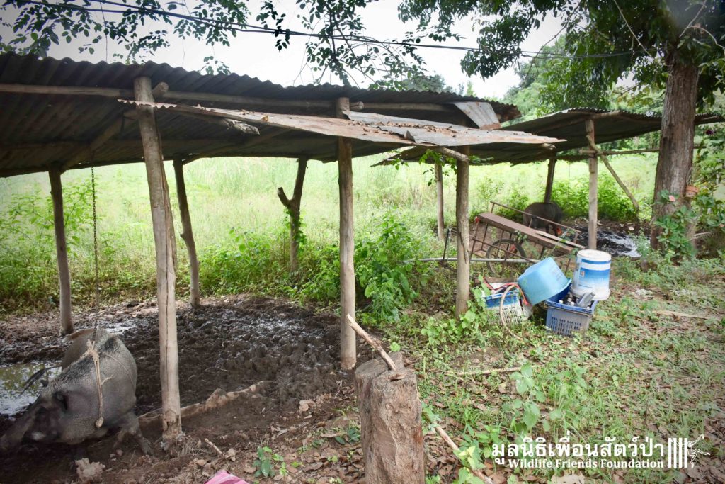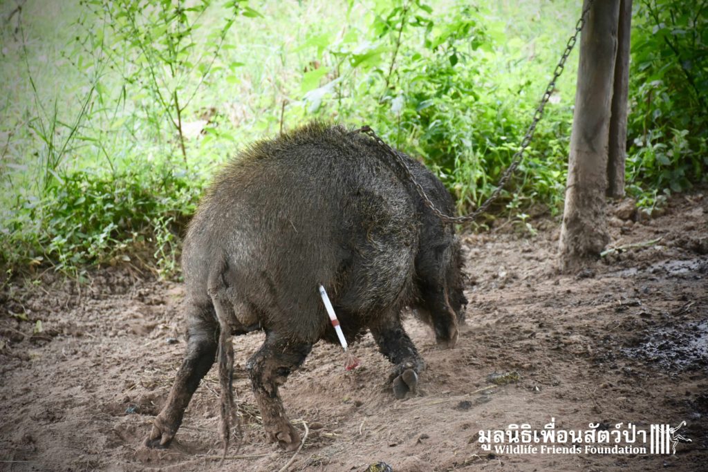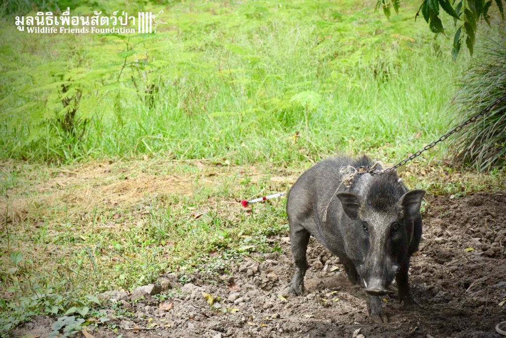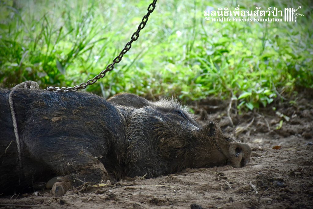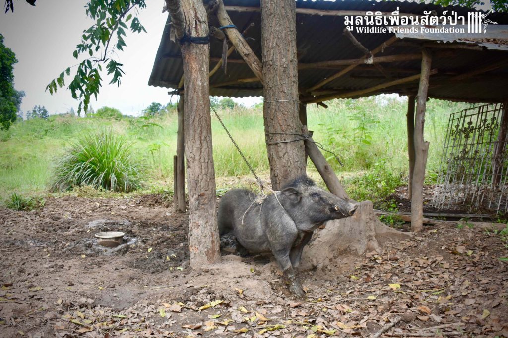 On their arrival at WFFT rescue centre, Som Boon & Pun Pon were placed in 2 side enclosures next to our large forested wild boars enclosure. Hopefully they will soon join the herd and meet Simon (our 3 legs cows). We will keep you updated on our 2 new residents and their new non-domestic life.