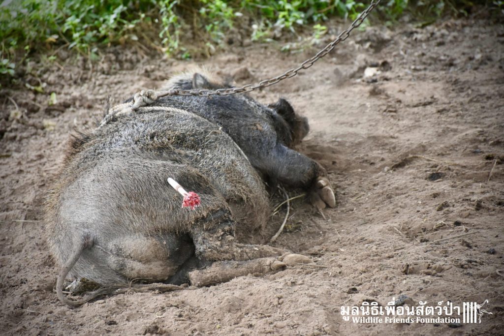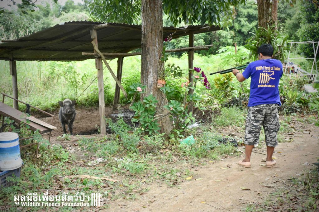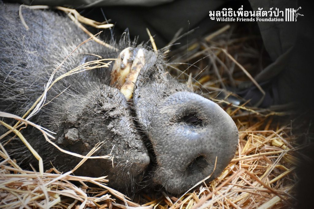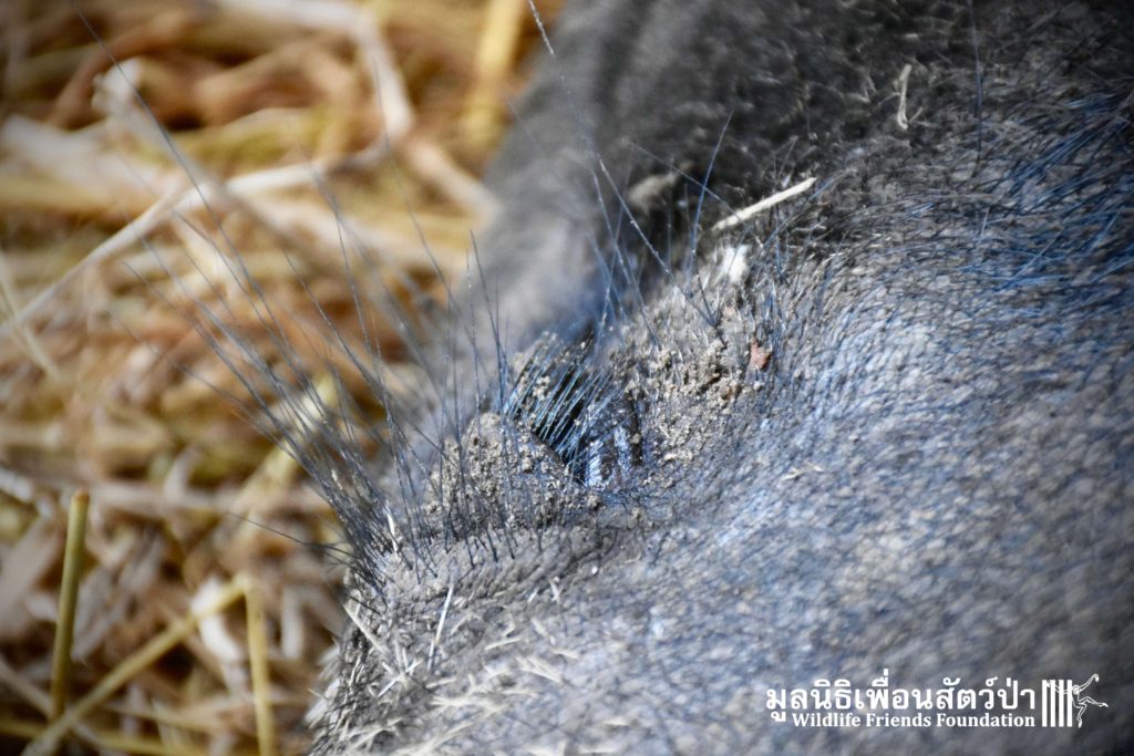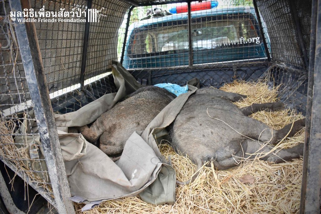 On their arrival at WFFT rescue centre, Som Boon & Pun Pon were placed in 2 side enclosures next to our large forested wild boars enclosure. Hopefully they will soon join the herd and meet Simon (our 3 legs cows). We will keep you updated on our 2 new residents and their new non-domestic life.