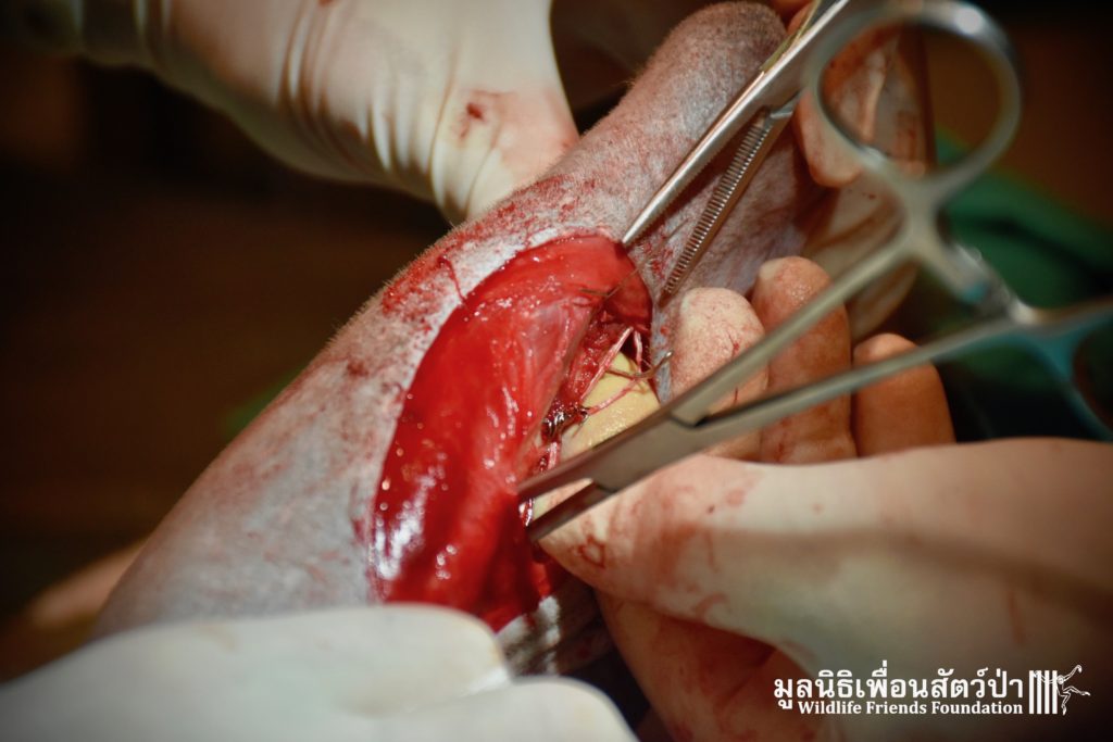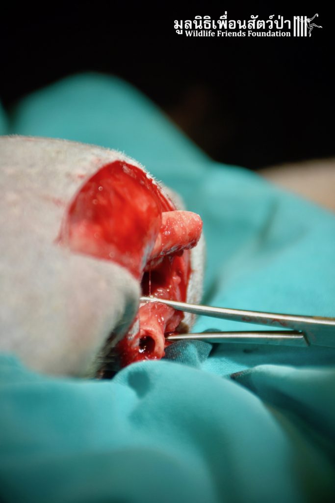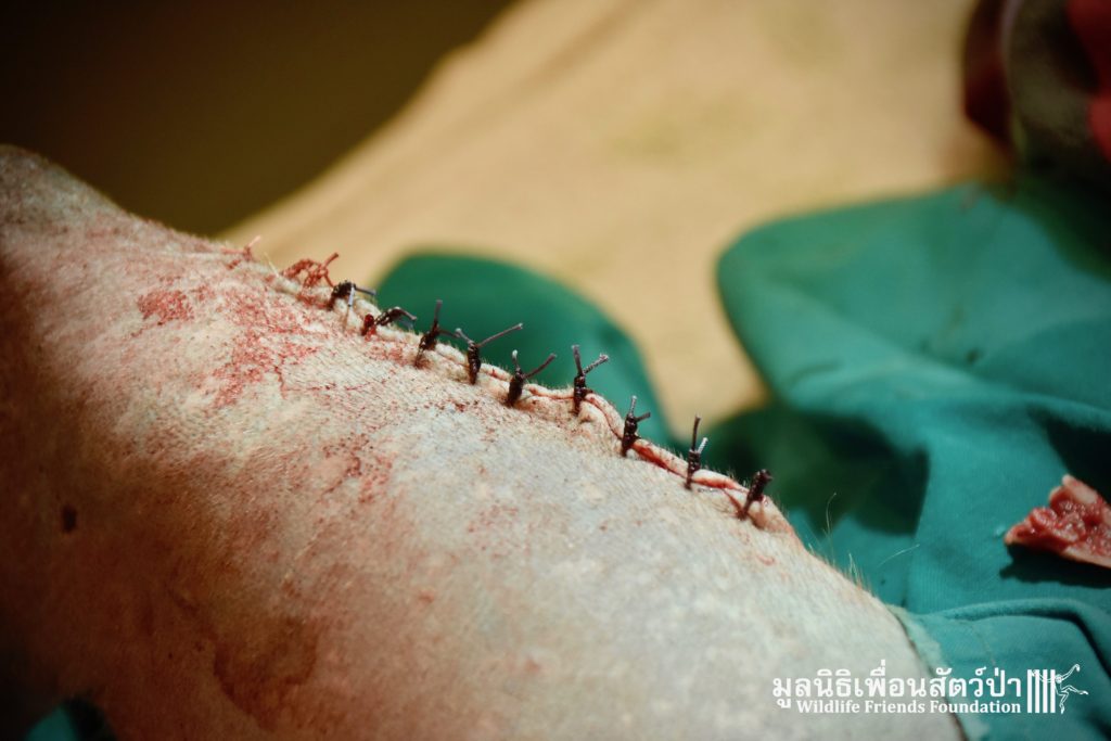 The team, planned to perform surgery the following day. The team agreed to try save the leg as without her leg a wild life would be difficult. The vet team inserted an intramedullary pin through the bones of her leg to re-joined the bones. So far the surgery seems a success, we will only be able to confirm this the coming days and weeks. We have named her ‘Rosy’. Rosy is currently recovering from her ordeal in the WFFT Wildlife Hospital in a small recovery enclosure to restrict her movement so her leg can have a chance to heal.