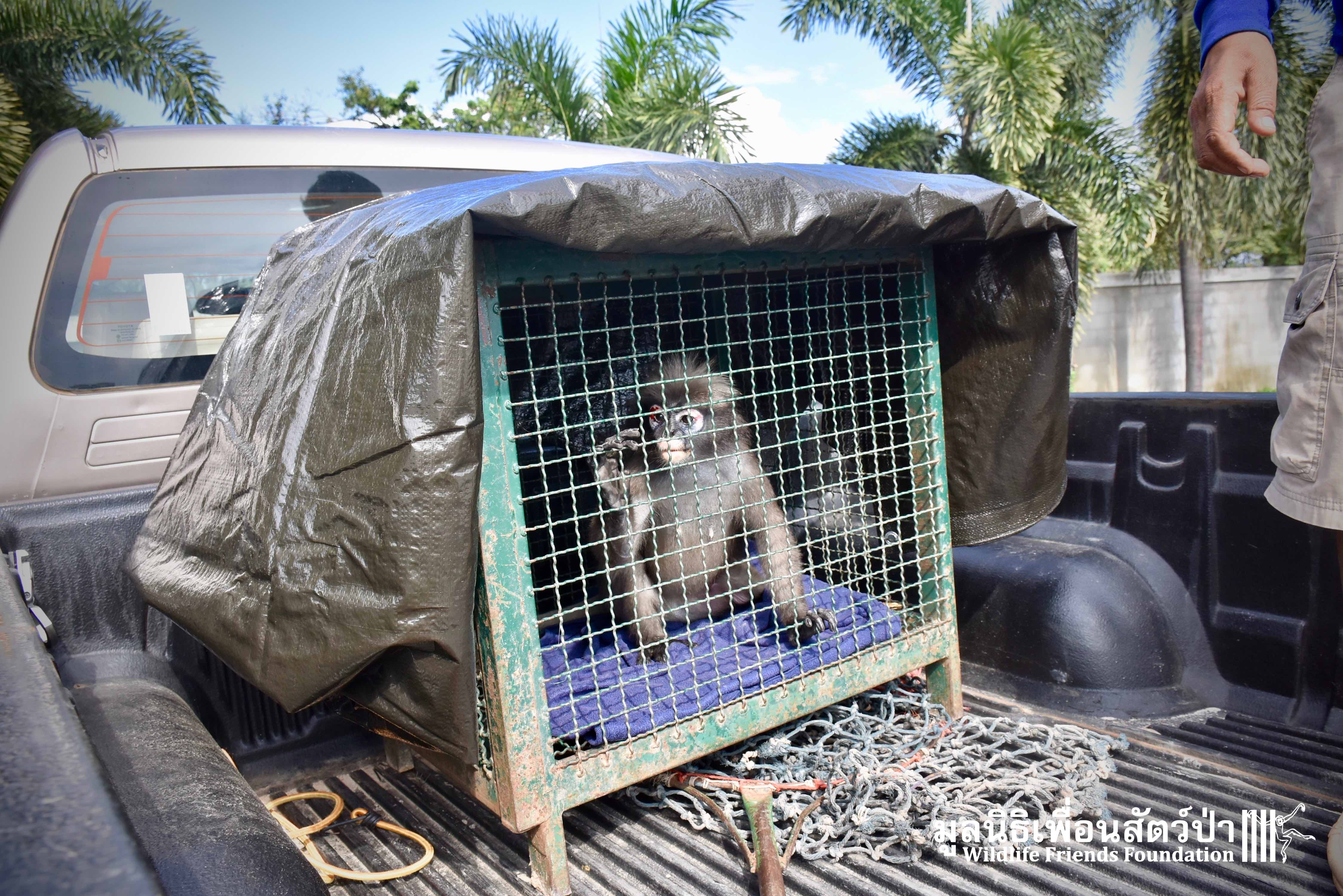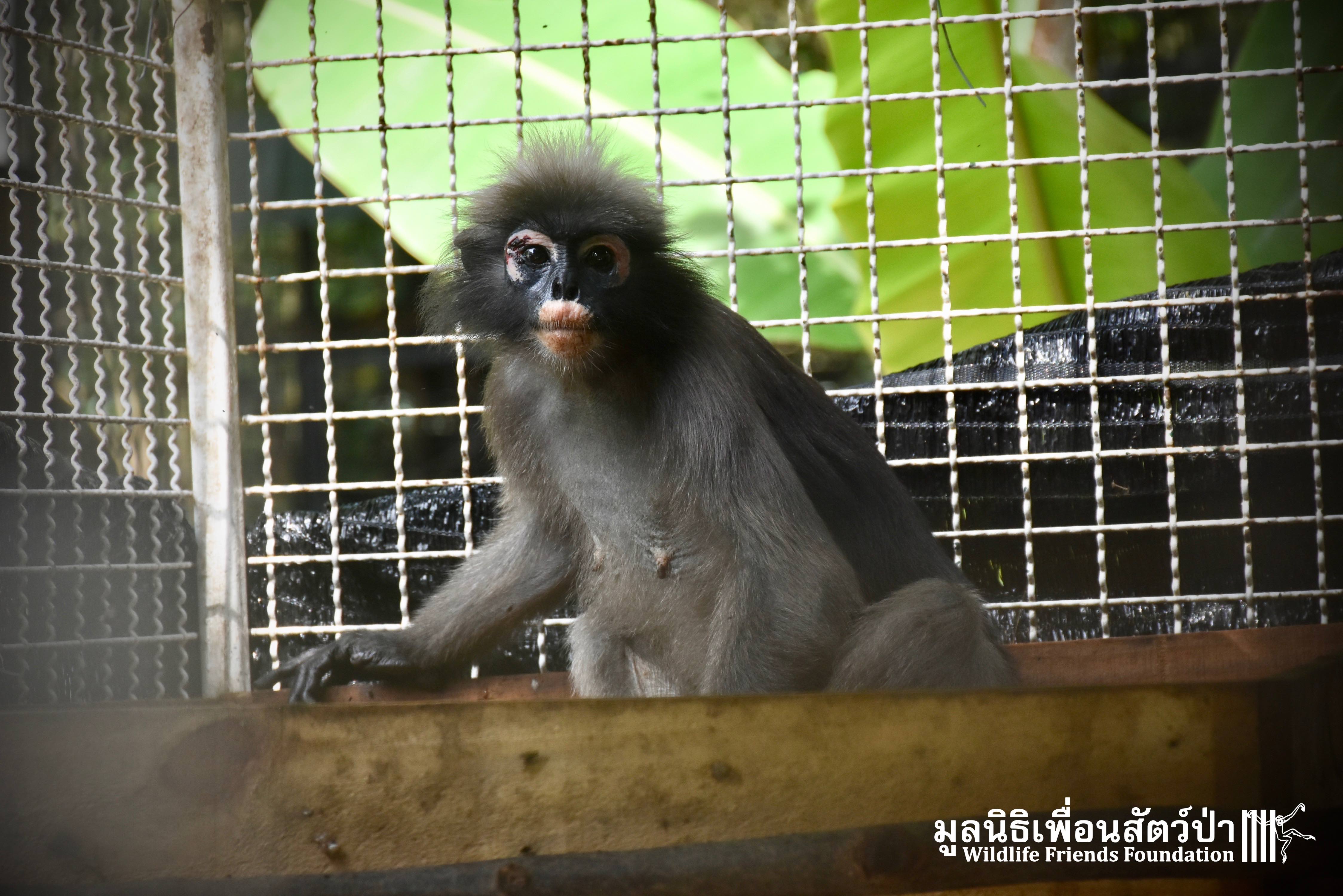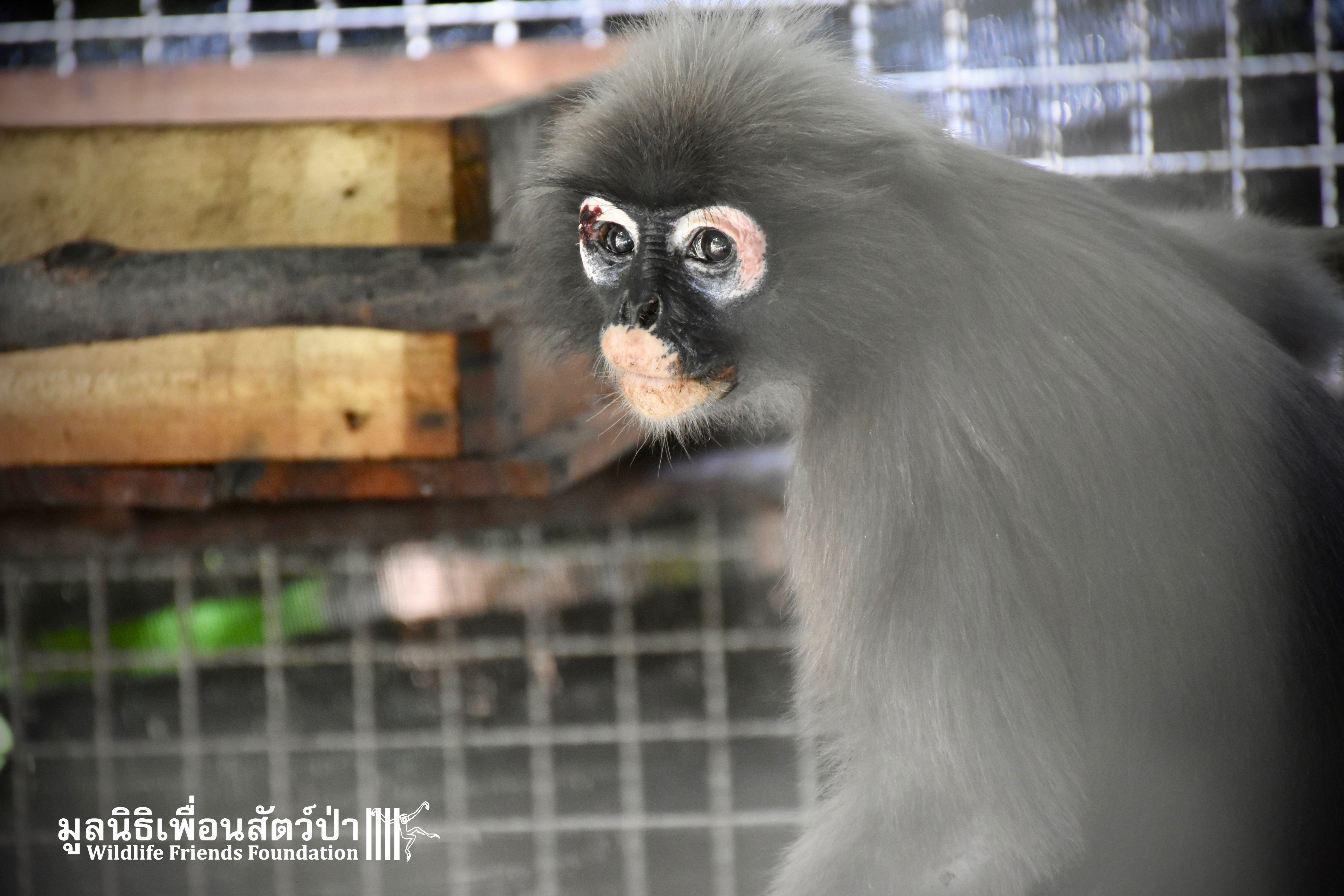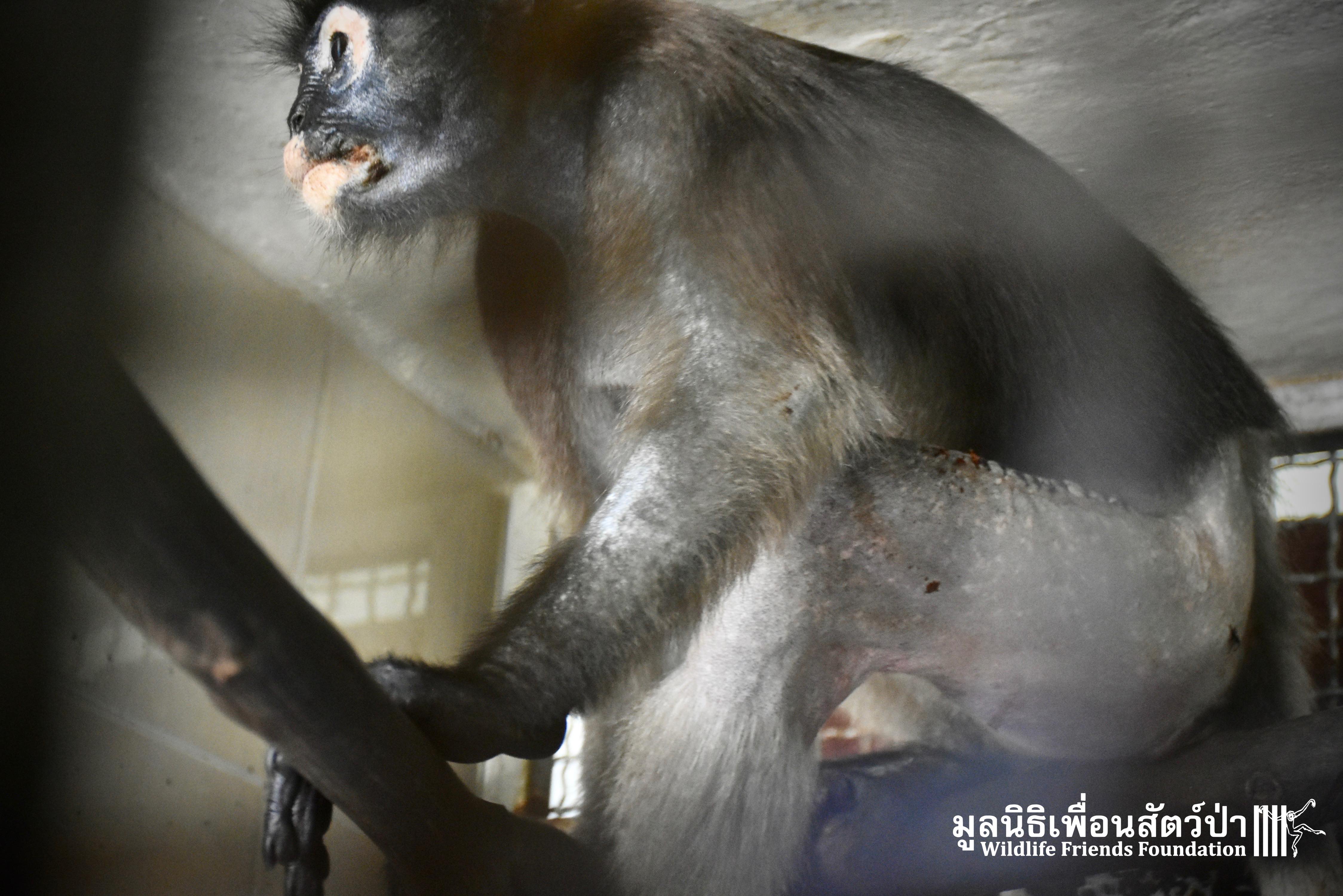 Earlier this week we received a telephone call from a human rescue team in the South of Thailand about an injured monkey in need of emergency rescue. The animal in question was a female dusky langur (Trachypithecus obscurus), she had been involved a collision with a road vehicle and has sustained severe injuries to the left leg. The accident occurred 4 hours south of the WFFT Wildlife Rescue Centre, the team headed out immediately to try a save this special primate.