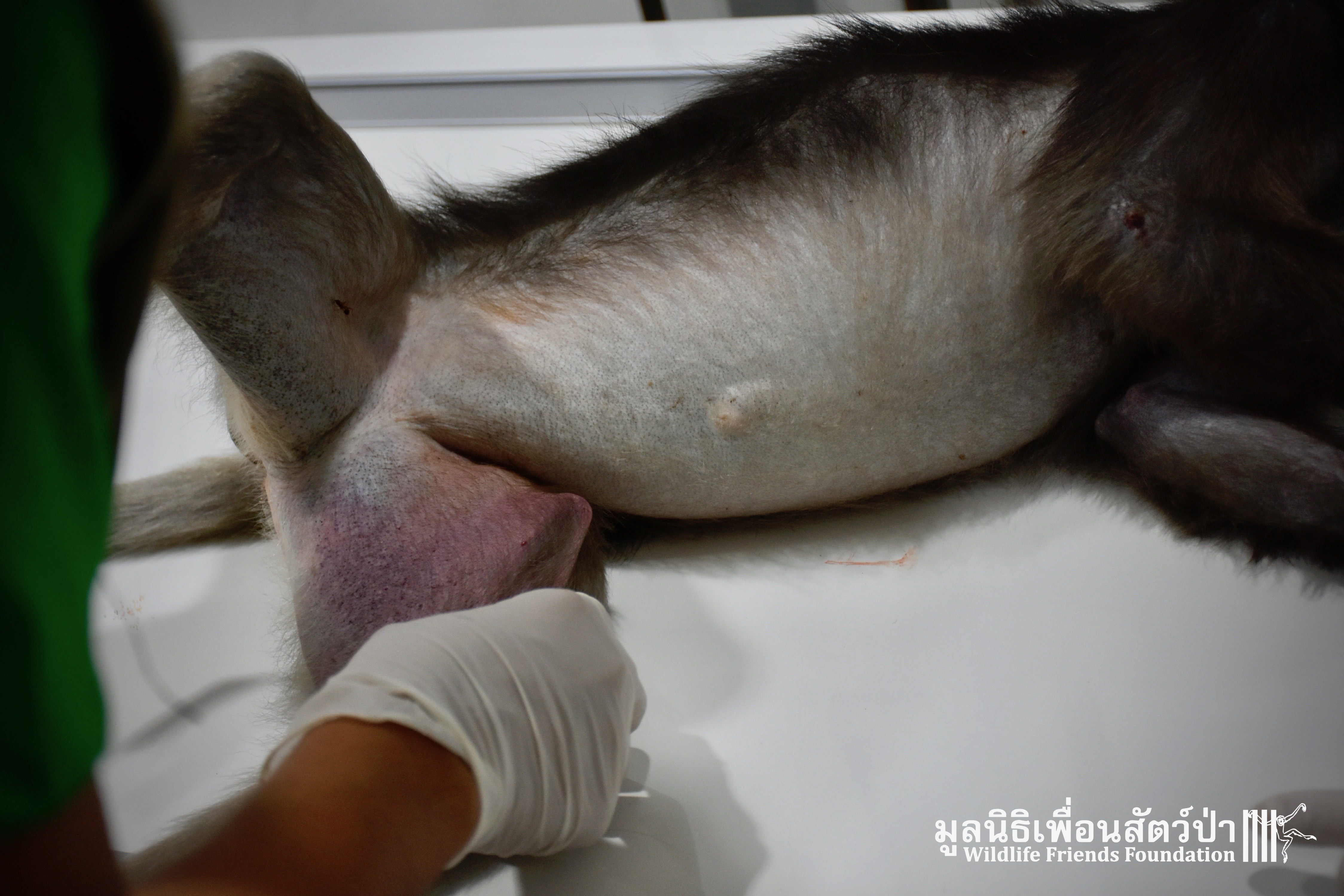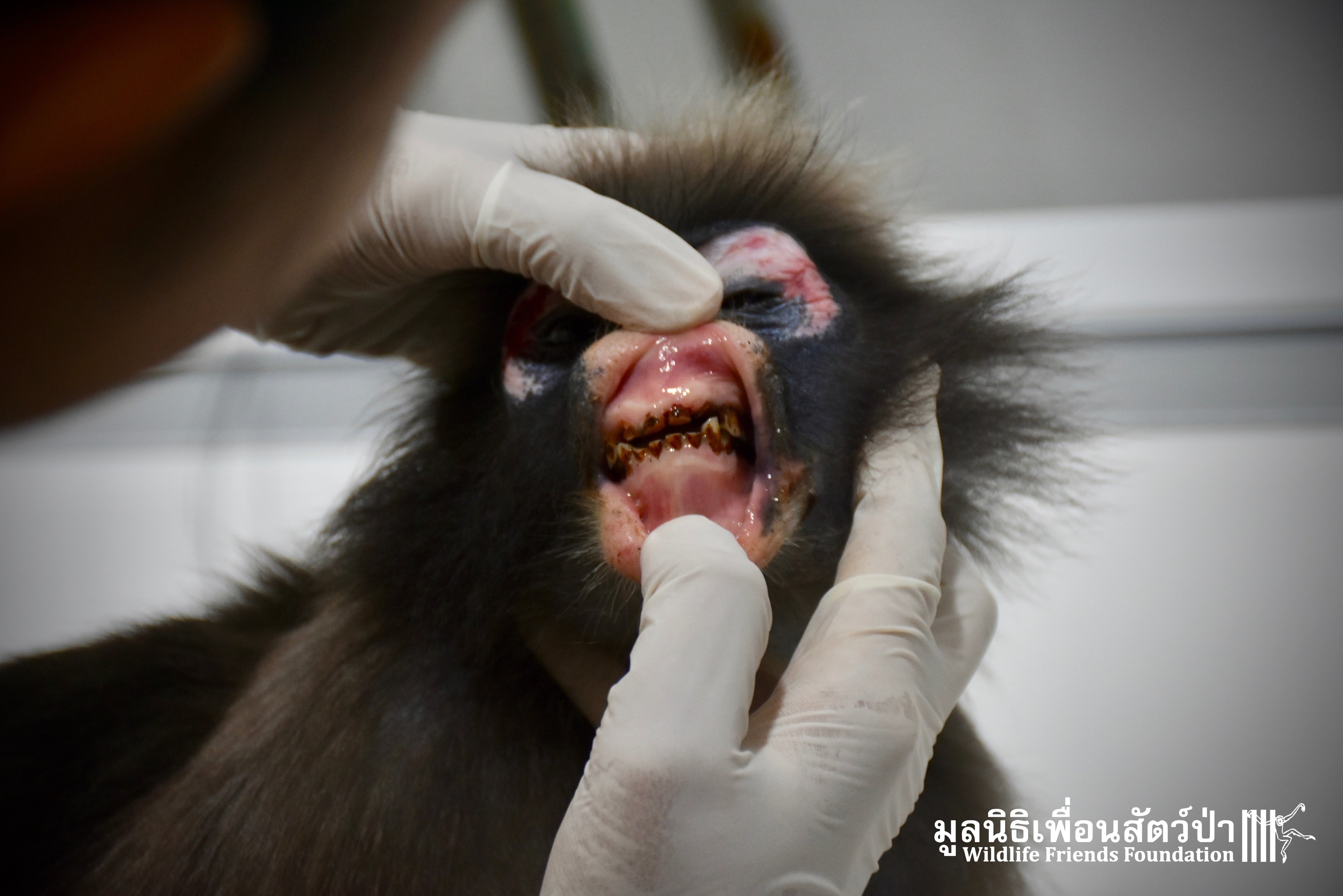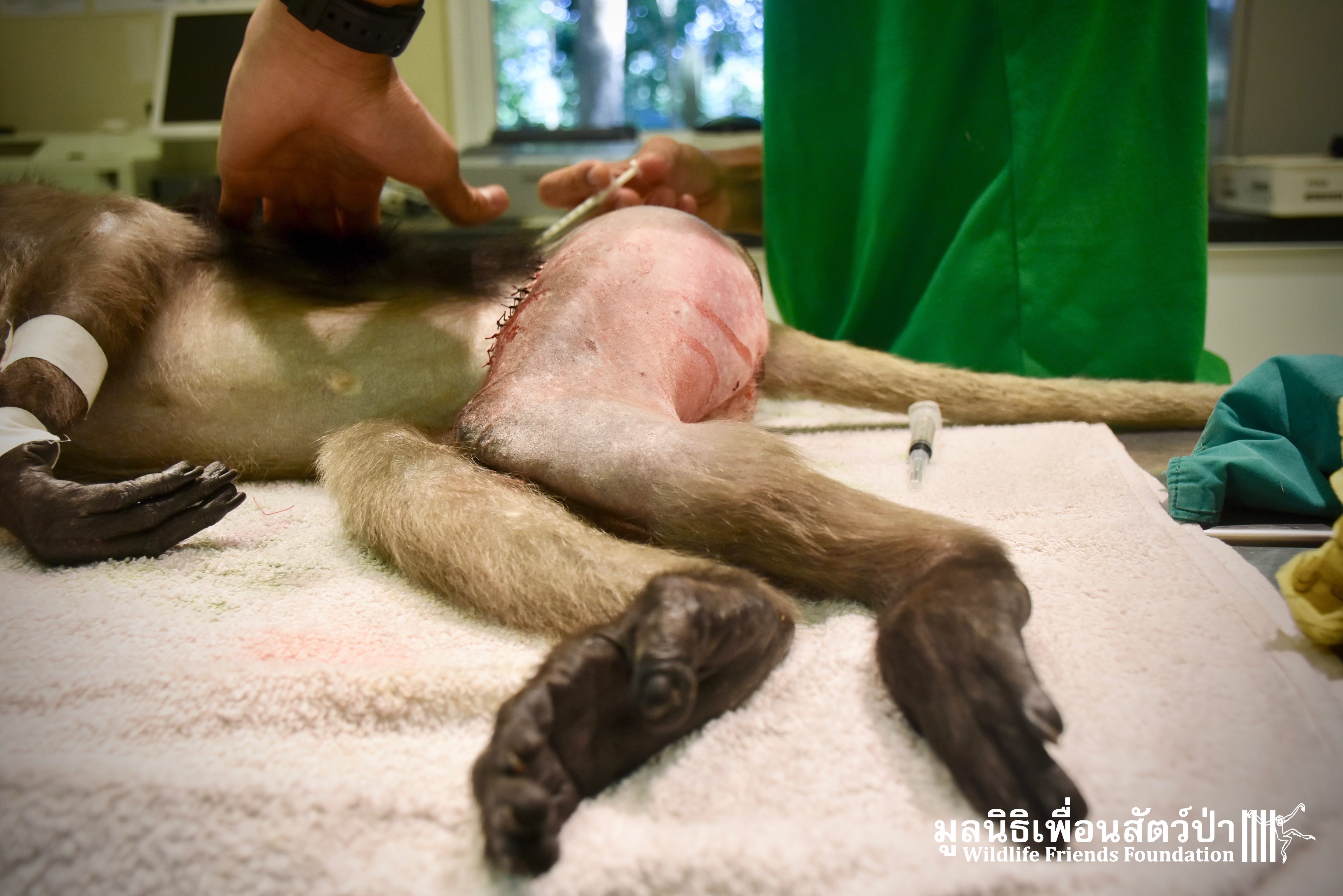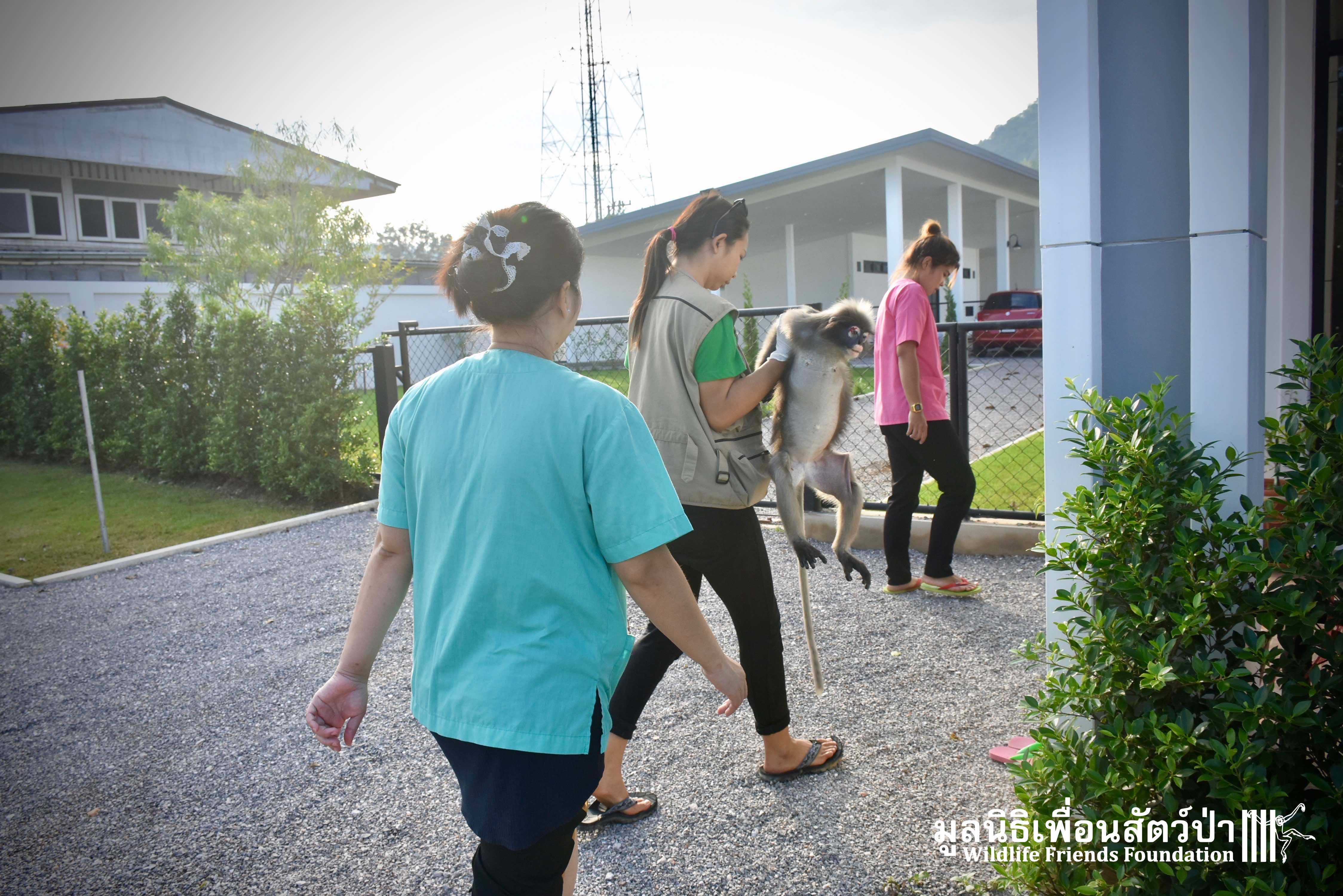 Earlier this week we received a telephone call from a human rescue team in the South of Thailand about an injured monkey in need of emergency rescue. The animal in question was a female dusky langur (Trachypithecus obscurus), she had been involved a collision with a road vehicle and has sustained severe injuries to the left leg. The accident occurred 4 hours south of the WFFT Wildlife Rescue Centre, the team headed out immediately to try a save this special primate.