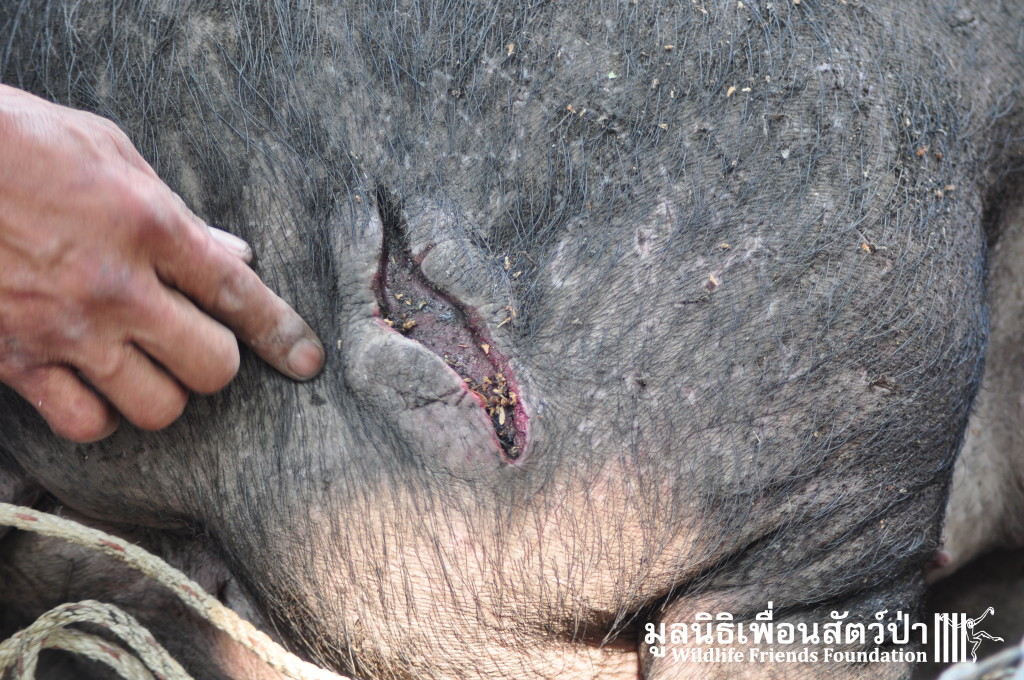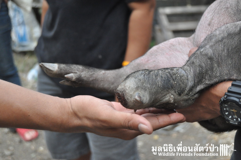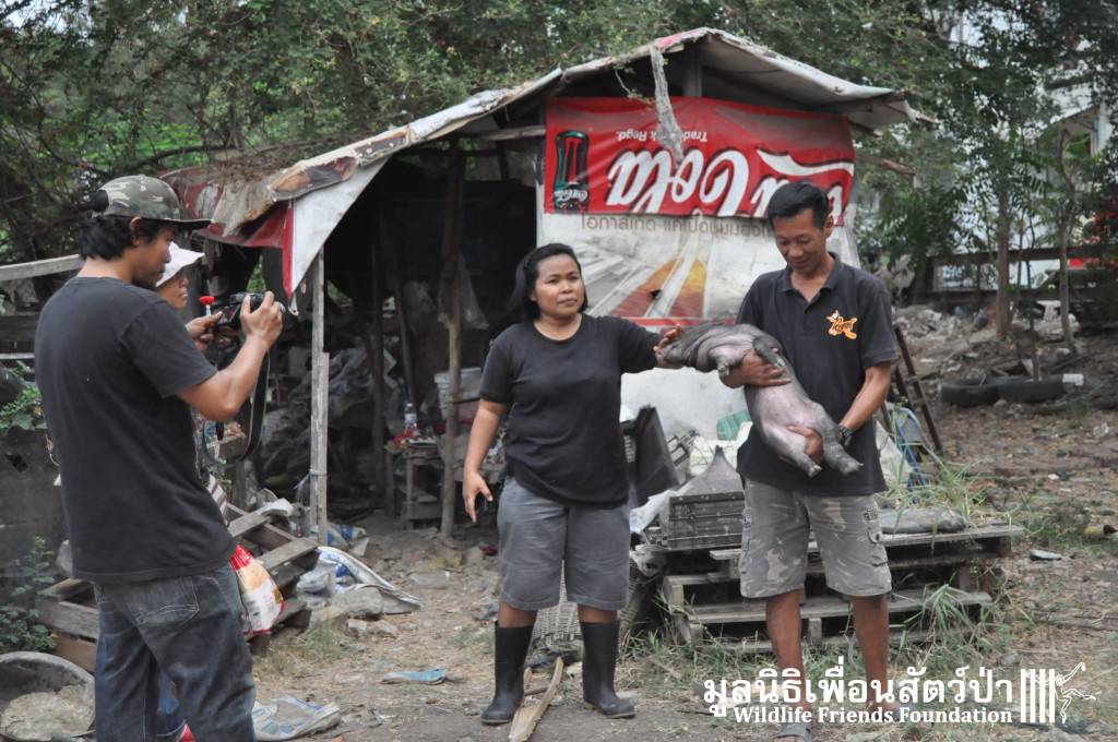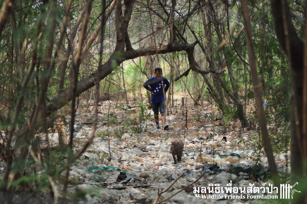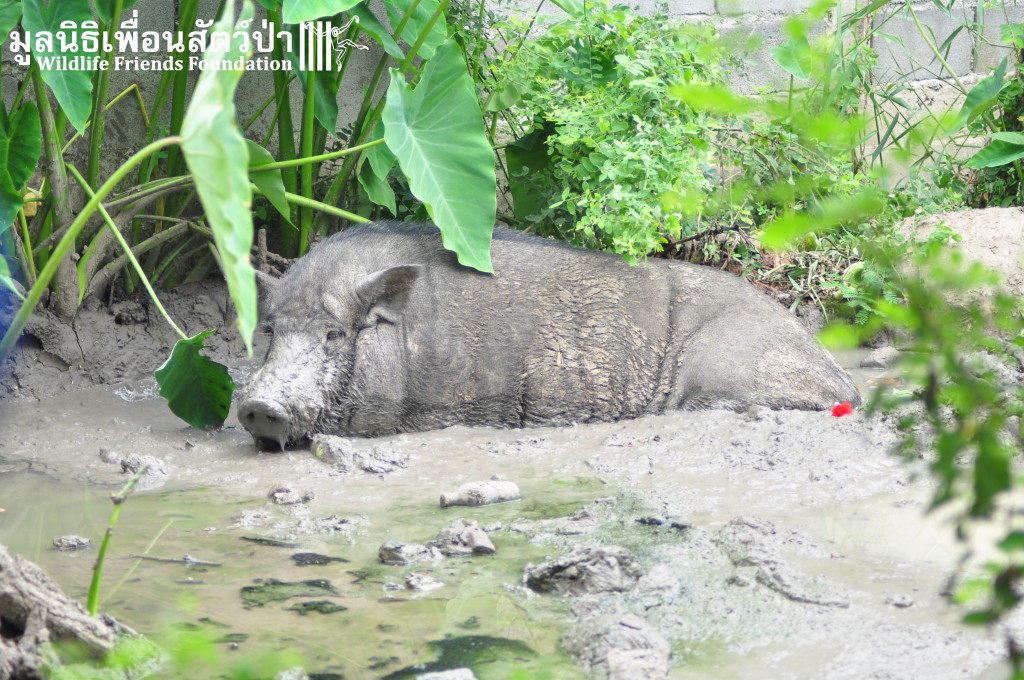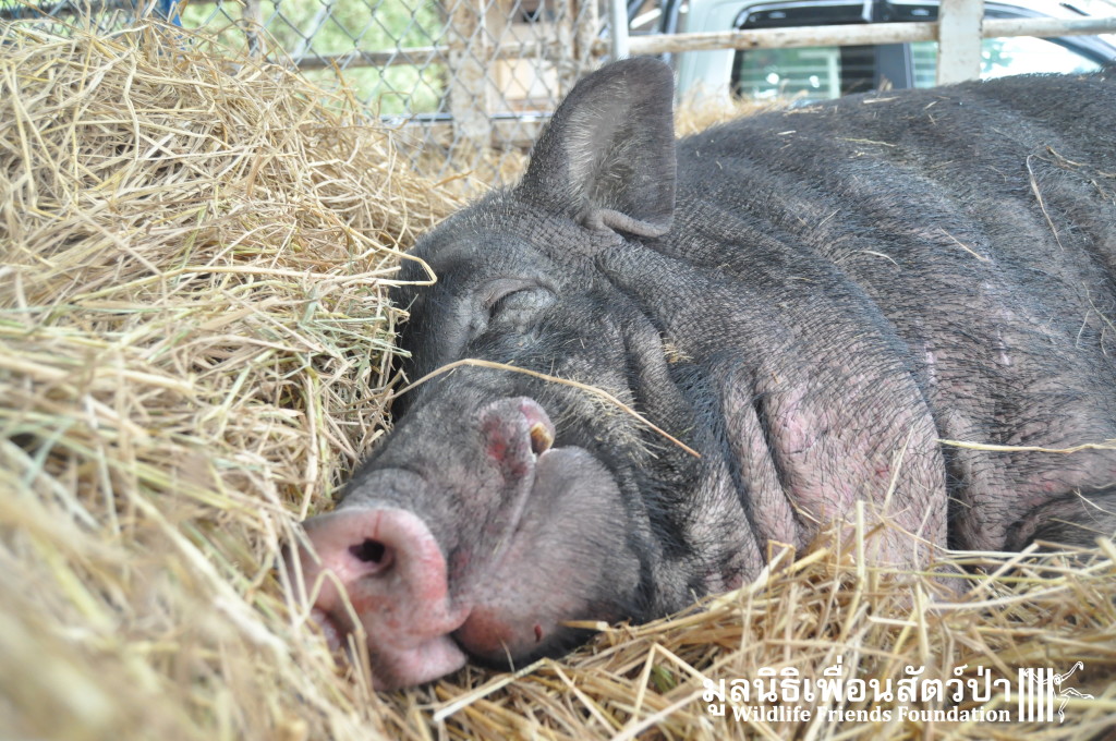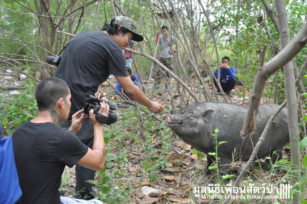 Yesterday the WFFT Rescue Team headed north to Bangkok on a mission to rescue a group of 9 Eurasian wild pigs (Sus scrofa) that were marooned on a piece of waste land surrounded by heavily populated urban settlements. We were alerted to the plight of these poor animals by TV personality Kittipong Khamsat from หมากาพย์ หมาจร and a long-term supporter of WFFT, Tossaporn Klunkaew. They had all originated from two individuals that had been released into an enclosed grassland area some years ago. As the years went by these pigs were under more and more pressure from urban expansion and poaching by hunters for food. This family off pigs had been at the site for many years without appropriate food or access to clean drinking water. Over the years they have managed to survive by being fed household food waste from kindhearted locals. Upon arrival to the site the WFFT Rescue Team were shocked at some of the clearly visible human caused injuries sustained by many of the pigs, barbaric barbed arrows had been used in an attempt to capture these pigs and eat them. A team of over 15 people spent the whole day rounding up the pigs to bring them back to the WFFT Wildlife Rescue Centre for urgent veterinary treatment and to provide them with a suitable home.