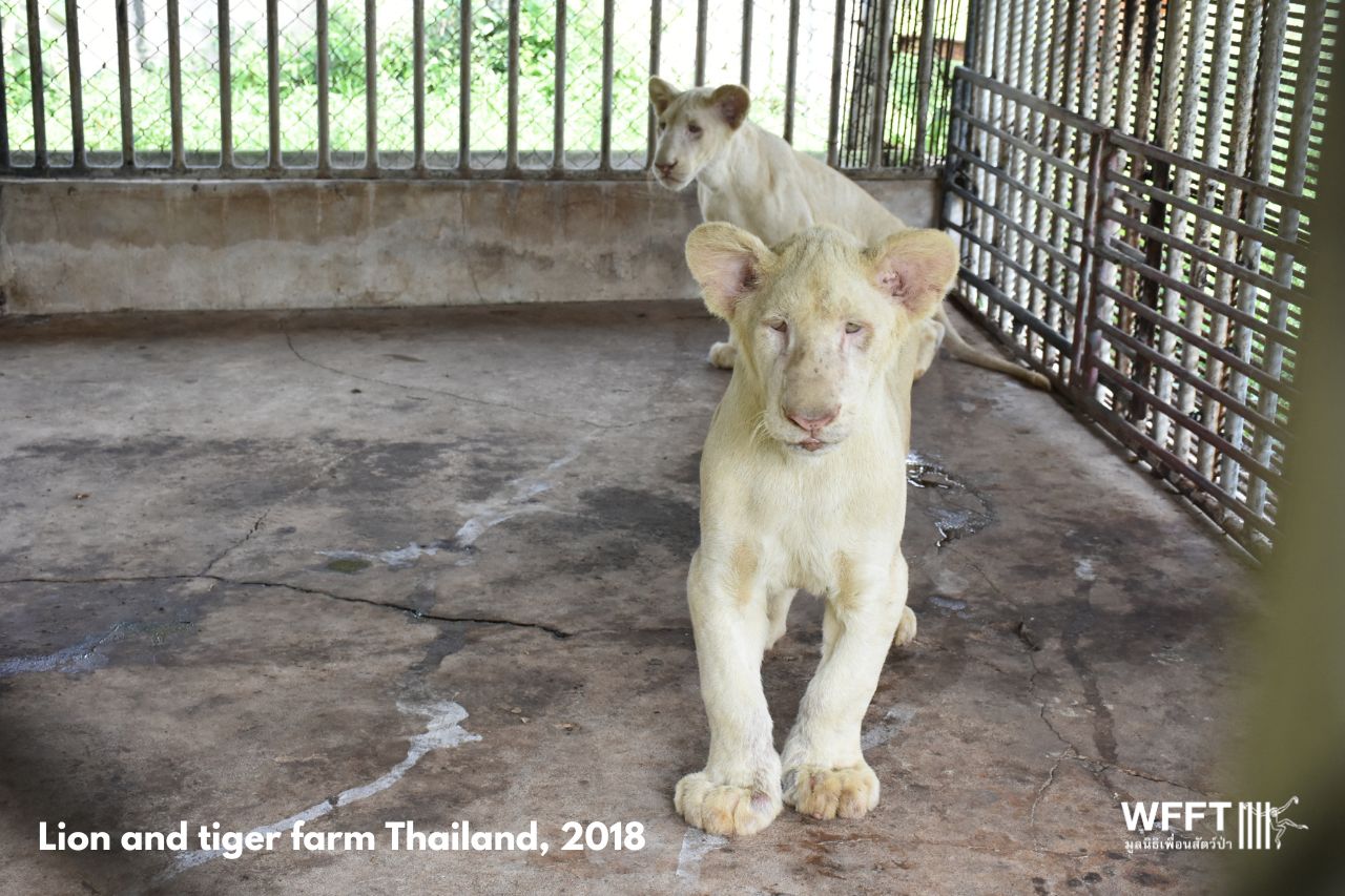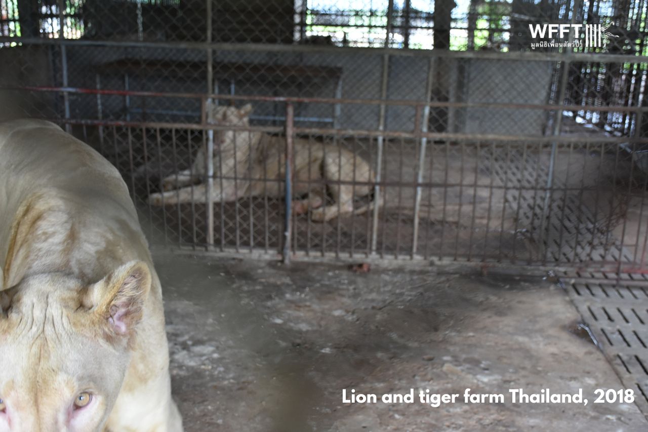 WFFT has been monitoring, investigating and reporting the breeding of lions (including breeding hybrids like ligers and liligers) for several years now. The captive lion population in Thailand has exploded over the last 2 or 3 years. These lions are not bred for any conservation value; they are bred and sold for human gratification. Many live in horrendous farms for breeding, and the babies are sold or rented to cafés and zoos for petting/bottle feeding, or are owned by rich Thais and foreigners. It is worryingly easy to buy a lion and apply for a permit to keep them.