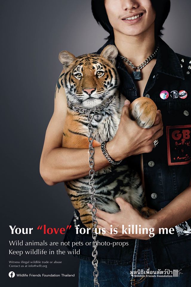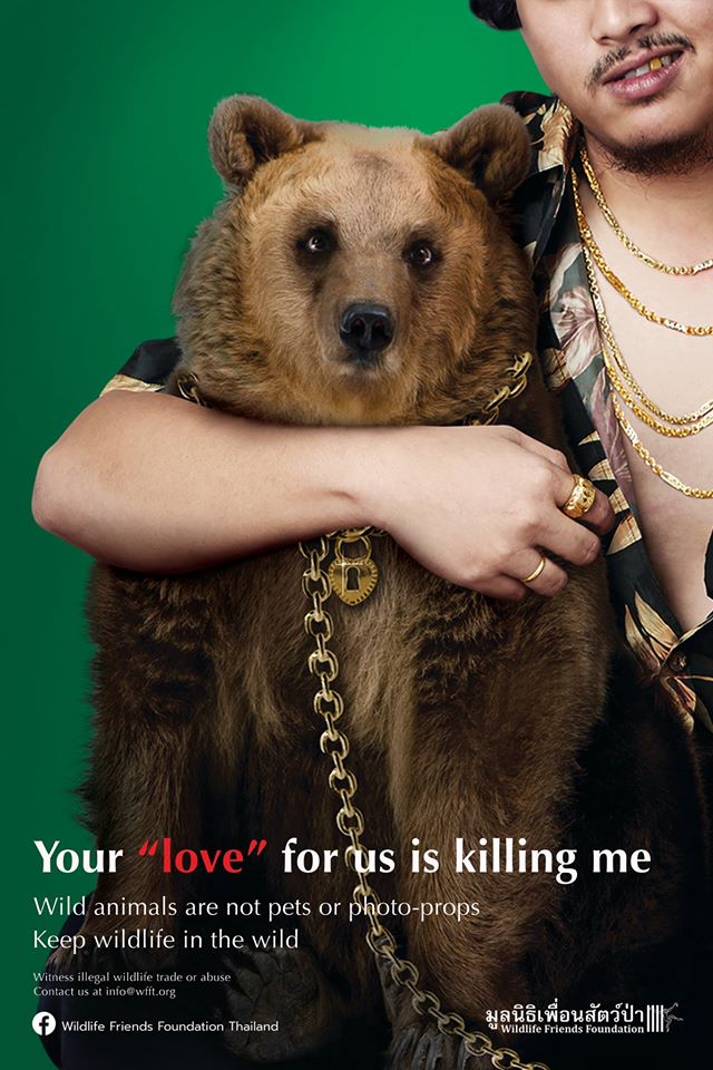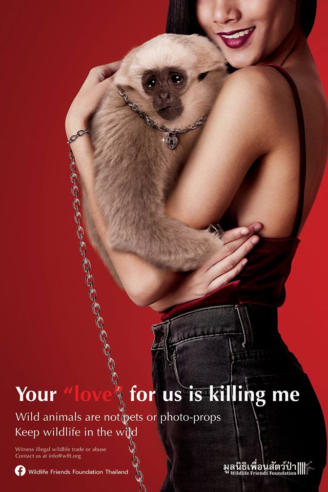 WFFT and WFI are starting a new campaign to create more awareness about the illegal wildlife trade for the pet and tourist trade. These 3 posters were designed by a Thai student to help spread the message. We are now asking permission from authorities and local businesses to present these posters on the islands of Koh Samui and Phuket and other places where wildlife is often exploited by tourists. WFFT would like to thank Miss Soontaree Jaiman from the Visual Communication Design Department of Design Poh-Chang Academy of Arts for designing this great campaign.